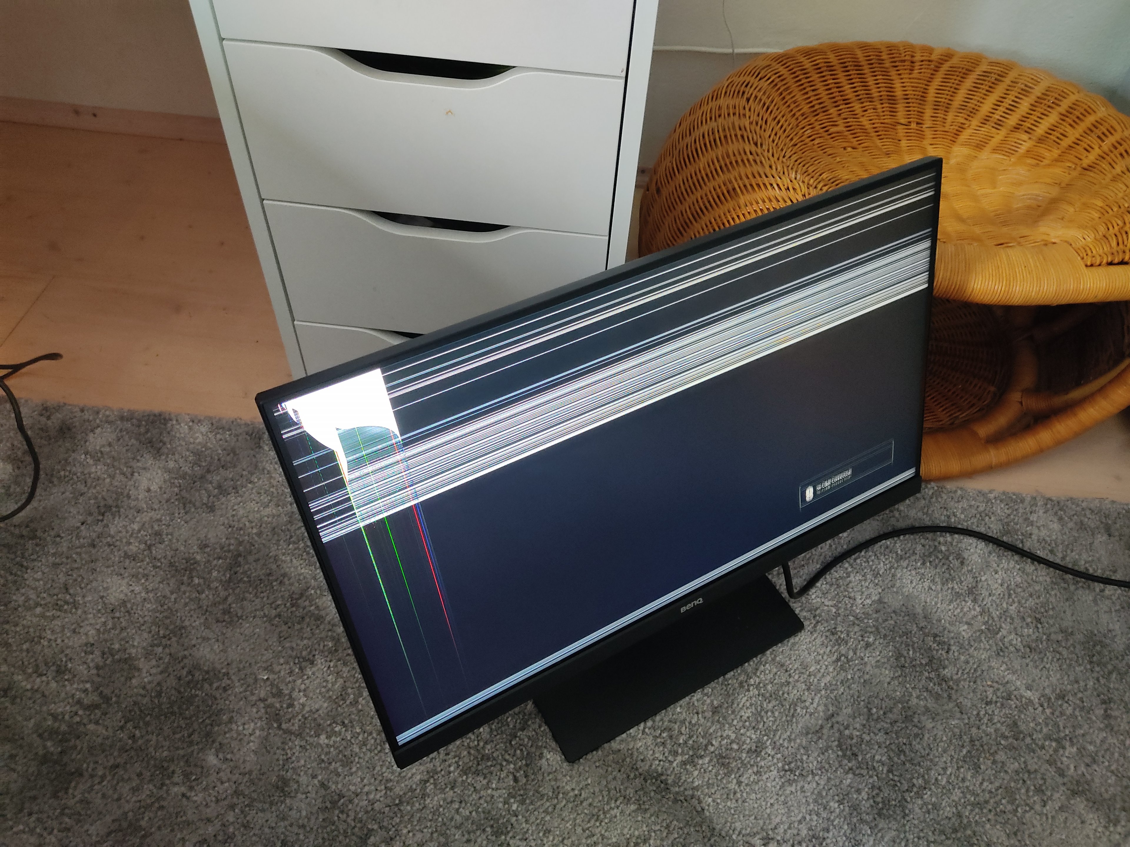 Da ich noch in der Garantie war habe ich mich an den BENQ Support gewandt und nachgefragt was man den da machen kann da der Bildschirm nun unbenutzbar ist. Das Display an sich ist nicht beschädigt nur eben das Panel.