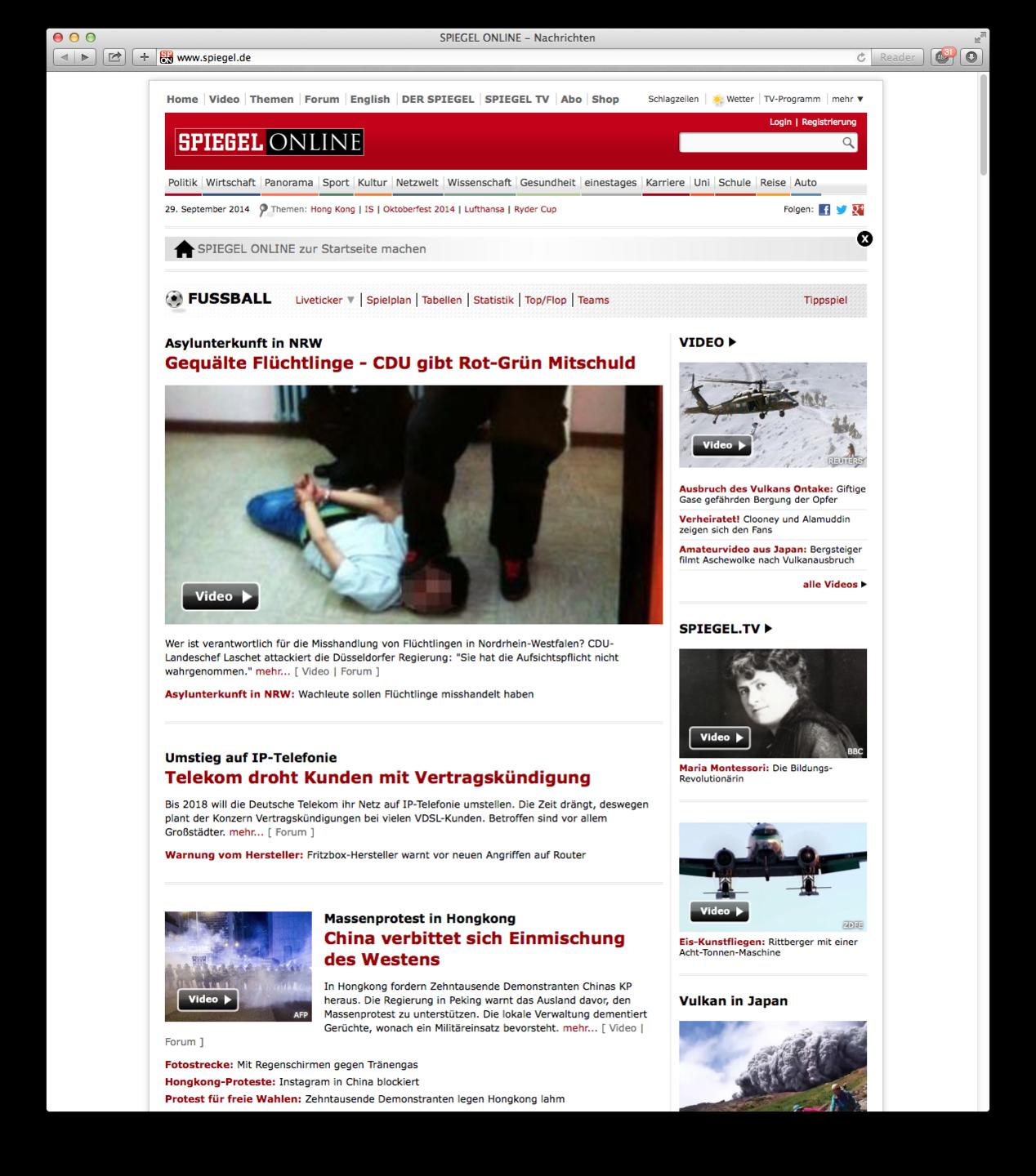 Links ist die Seite Spiegel.de in Windows und rechts unter OSX Mavericks.