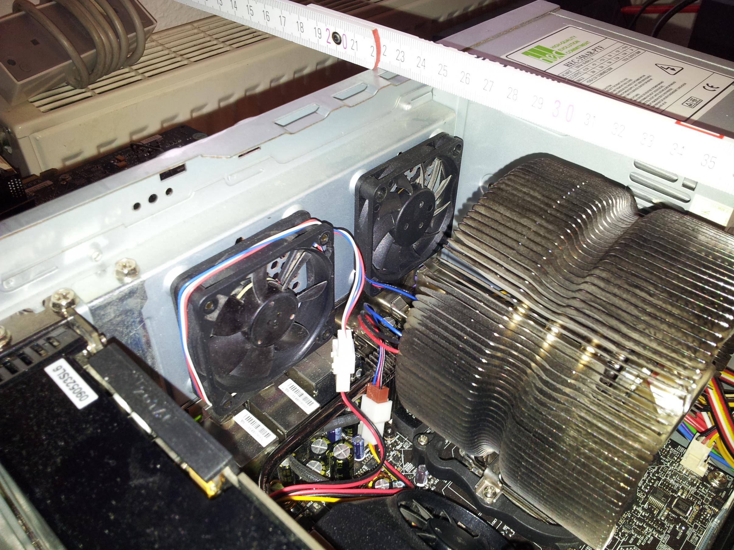 ... der Zuluft-Venti sollte ne leise Type sein oder mit nem Poti begrenzt werden, so wie bei mir. die volle Lautstärke bei 100% Geschwindigkeit ist sonst nur mit Headset erträglich. die beiden Abluft-Ventis habe ich mir von alten CPU-Kühlern geräubert, auch die sollten leise Kandidaten sein.