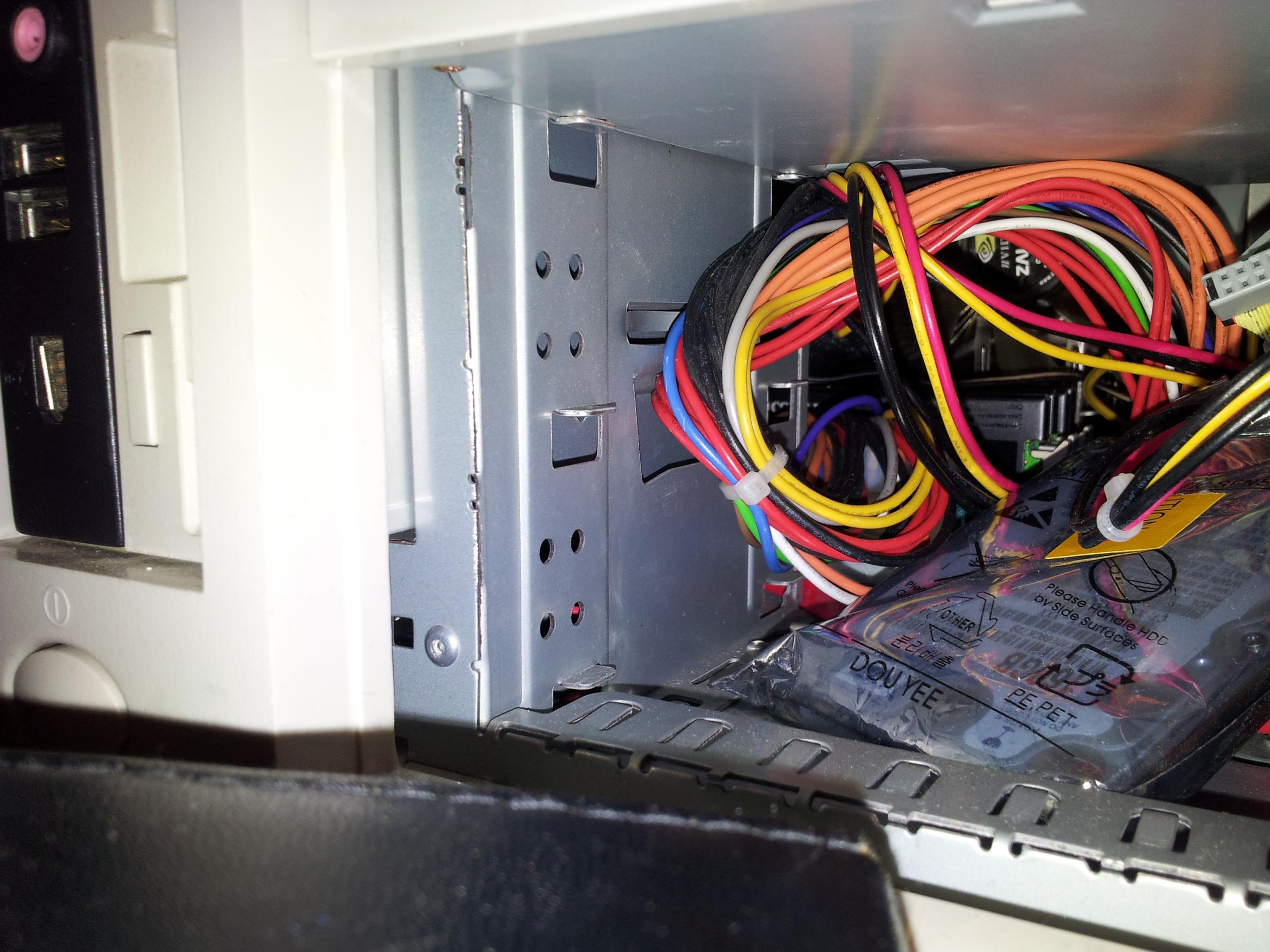 ... hier sind die ganzen schicken Haltenasen zu sehen, die sich so richtig in ein Kabel verbeißen können, also vorsichtig aufsetzen und nach vorne schieben, sonst ist womöglich ein Kurzschluß der Anfang vom Ende, ganz im Stile der alten AT- und ATX-Gehäuse früherer Zeiten
