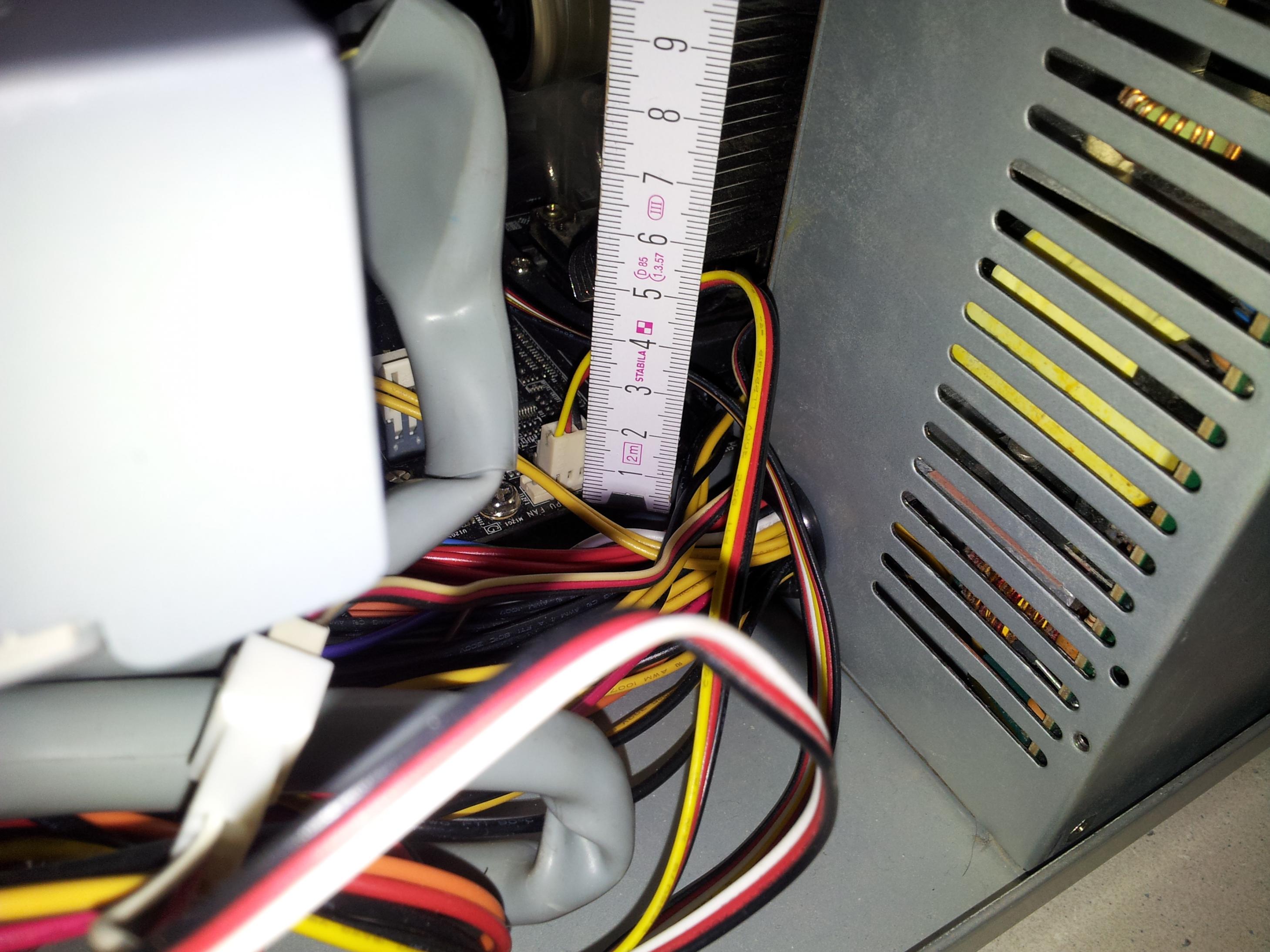 203.20 mm (8.00 in) measured from back of front bezel; 212.09 mm (8.35 in) including front bezel. also er paßt rein; mein DVD-LW ist ziemlich genau 2cm kürzer als dein Tandberg. der würde etwa da aufhören, wo bei mir auf Bild 02 die 21cm-Marke ist. aber dann halt nur in den oberen beiden Bays, wenn so ein riesen MB verbaut ist, wie bei mir.