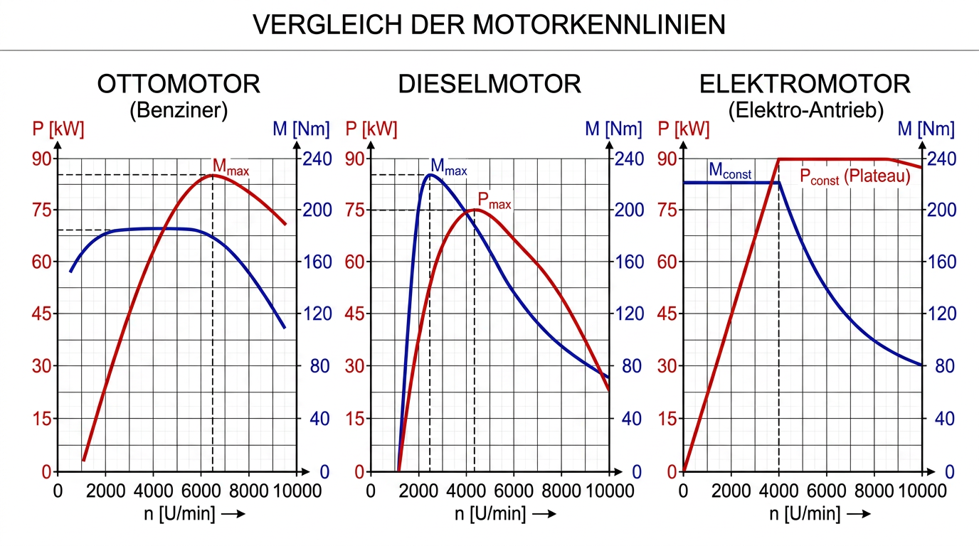 Diesel hat typischerweise auch ab start mehr bums kommt aber ebenso bei weitem noch nicht an die charachteristik von e-motoren. die maximale Leistung ist dann aber auch wieder erst im höhren drehzahlbereich natürlich. richtung 3000-4000? ist ja auch etwas unterschiedlich je nach Auslegung.