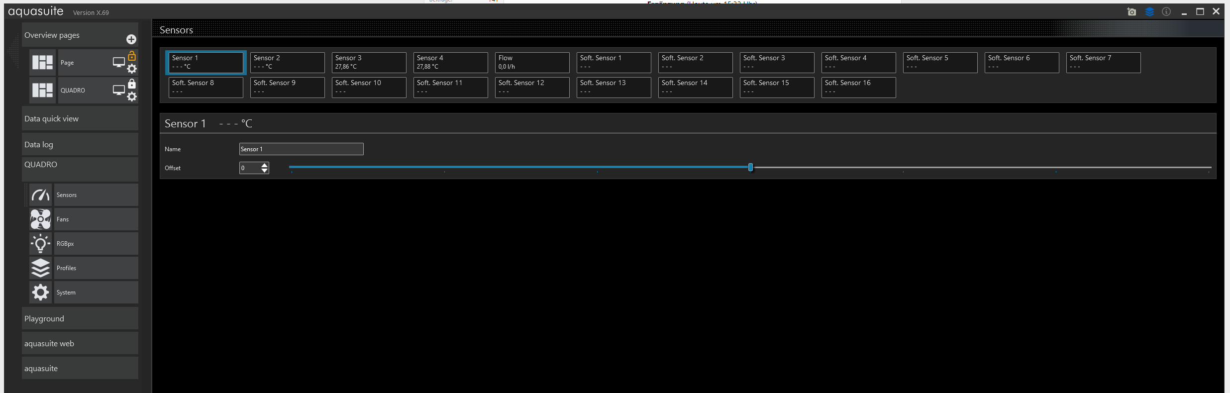 Wichtig: Falls alle Lüfter abgeklemmt sind, behalte die Wassertemperatur im Auge. Du willst diese nicht unnötig hoch werden lassen. Ich würde nicht über 50°C gehen. Alternativ lass die Lüfter parallel über das Mainboard laufen, solange du einzelne Lüfter oder die Pumpe am Quadro testest.