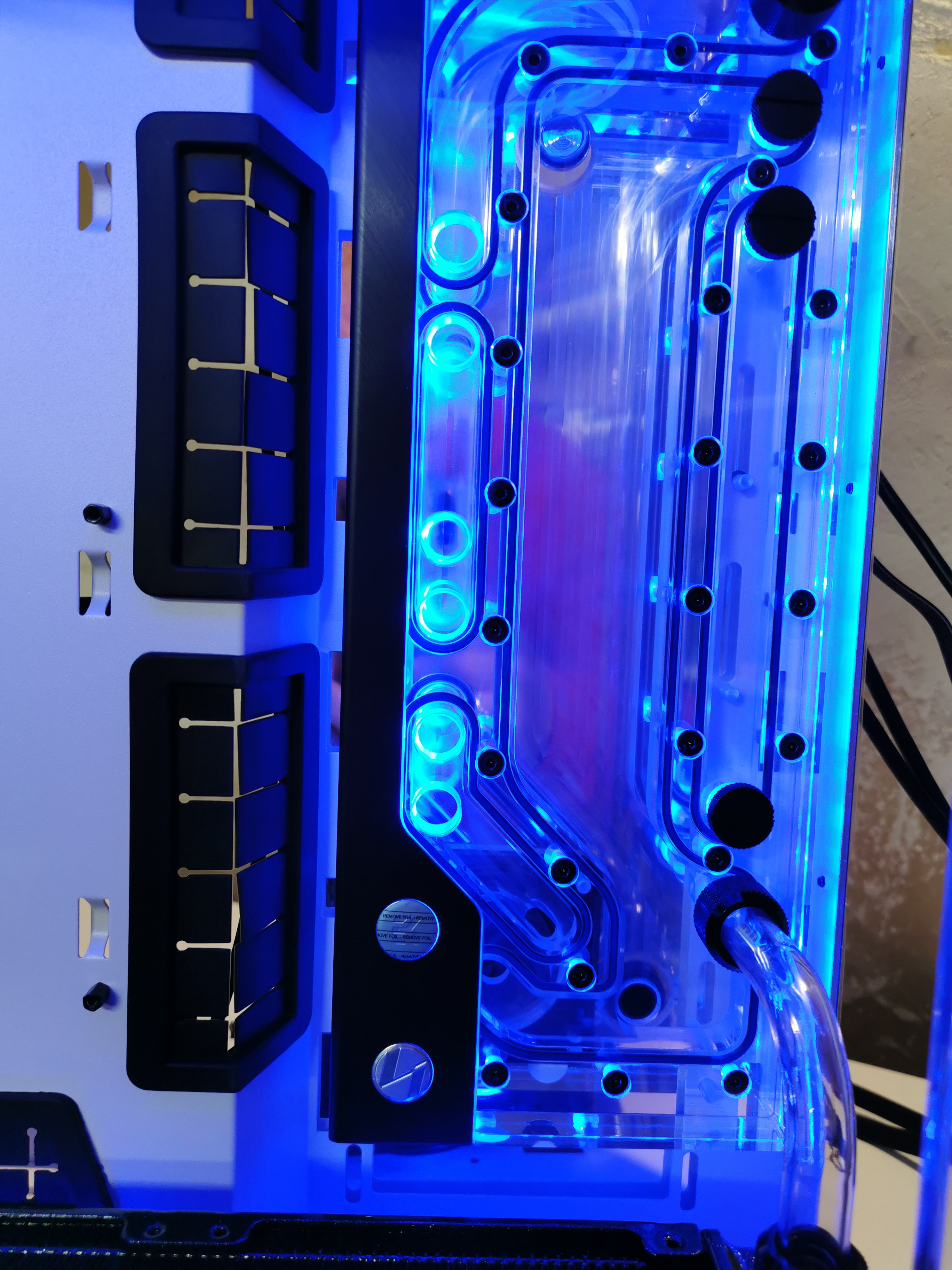 Befülle den Loop einfache ohne Strom bzw. mit extern versorgter Pumpe. Wenn was leckt, sollte die Hardware so erst mal keinen Schaden nehmen.