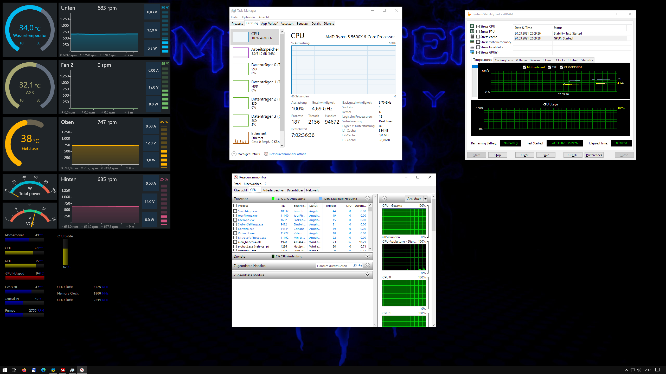 Ich denke bei den Lüfterdrehzahlen normale temps. Raumtemperatur 21 Grad.