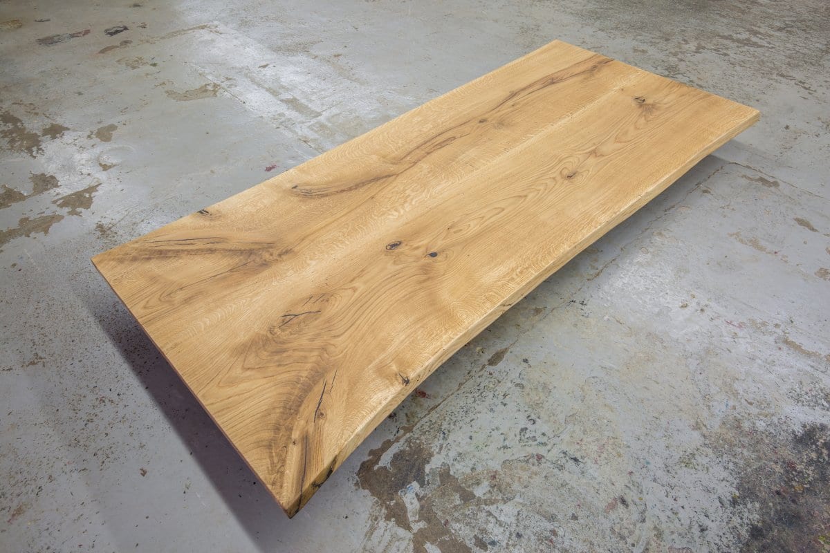 Solch eine massive Ein-Stück-Platte mitten aus einem riesigem alten Baum raus wie ich oben verlinkt habe ist dann ausgefallen genug, dass man da spezifisch einen Fachhändler für finden muss... und das kostet dann weit mehr, weil das sind die Premium-Stücke aus einem Premium-Baum, händisch ausgesucht.