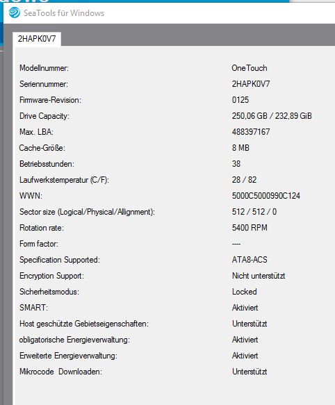 Der kurze Festplatten Selbsttest mit SeaTools wird bestanden, aber beim einfachen Kurztest fällt die Platte durch: