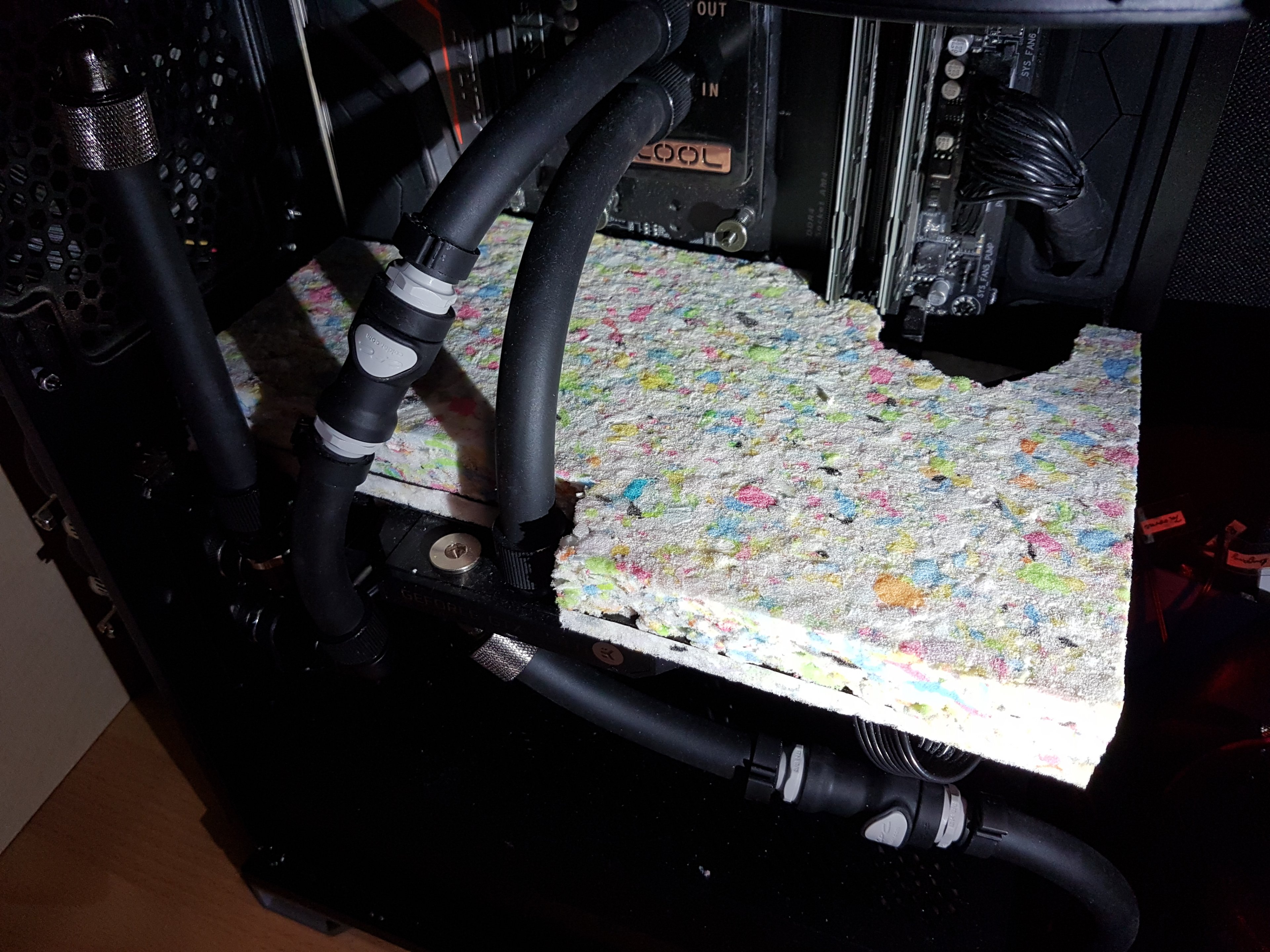 2) Der Schalldämmschaum ist mittlerweile angekommen und ausprobiert. Die Wirkung gegen das Spulenfiepen ist leider nicht so dramatisch wie erhofft - was teils auch daran liegt, dass ich erst danach festgestellt hatte, dass das leise Fiepen im Idle garnicht von der GPU sondern vom Mainboard aus stammt. Meh.