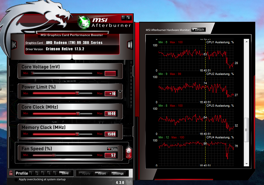 CPU Auslastung liegt bei ~85% mit Game+OBS.