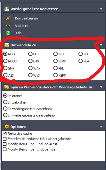 "Sprintbit Playlist Manager" wandelt ziemlich alle Formate in alle um (siehe Foto 7).