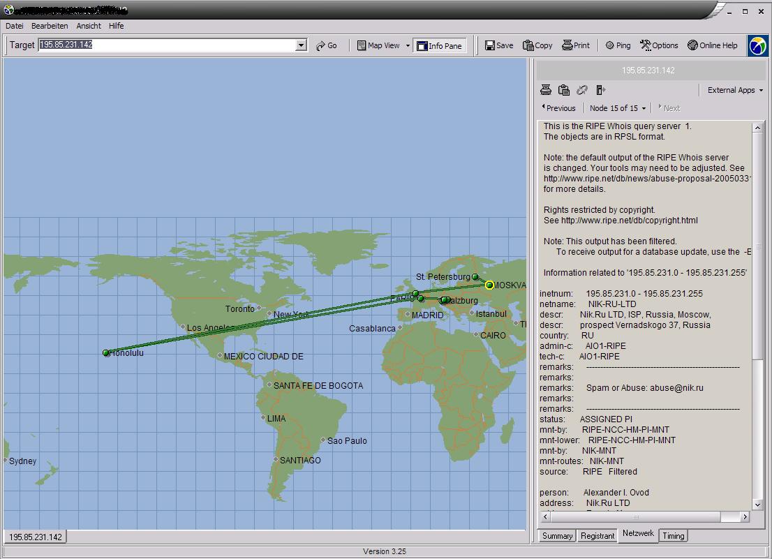 Jetzt wundert mich garnix mehr, mein Proggie sagt mir das die in Moskau sind! Dann ist ja wohl alles klar oder!? Und der Server von CB kann nur in Köln stehen! lol