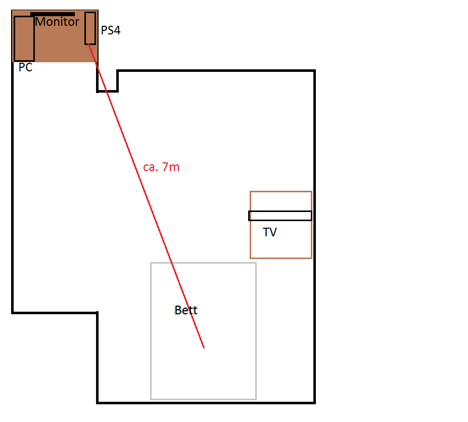 Ich habe meine PS4 neben meinem Computer stehen da ich sie an den PC-Monitor geschlossen habe, hab mir dann letztens einen HDMI-Splitter gekauft um auch aus meinem Bett am Fernseher zu zocken. (Da ich kein Bock habe die PS4 ständig hin und her zu tragen).