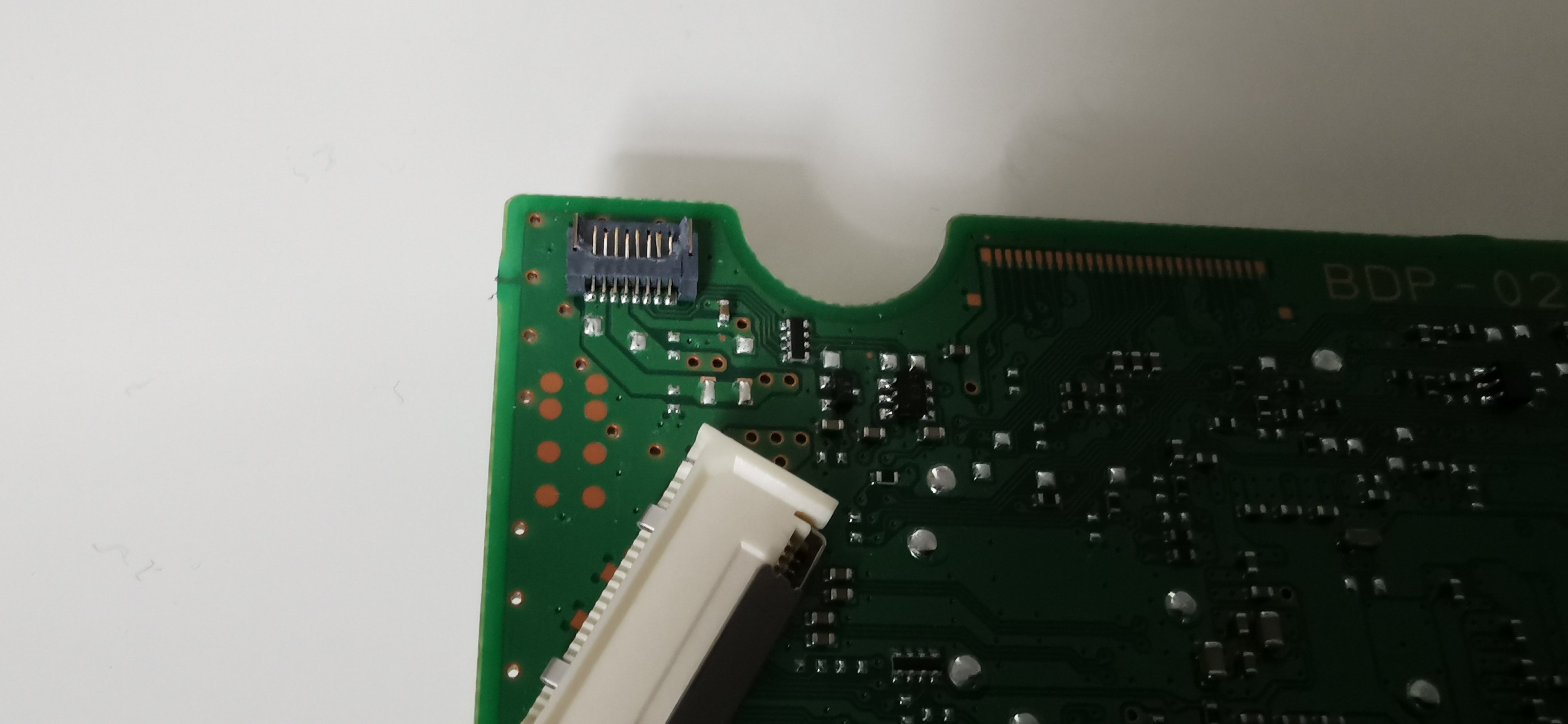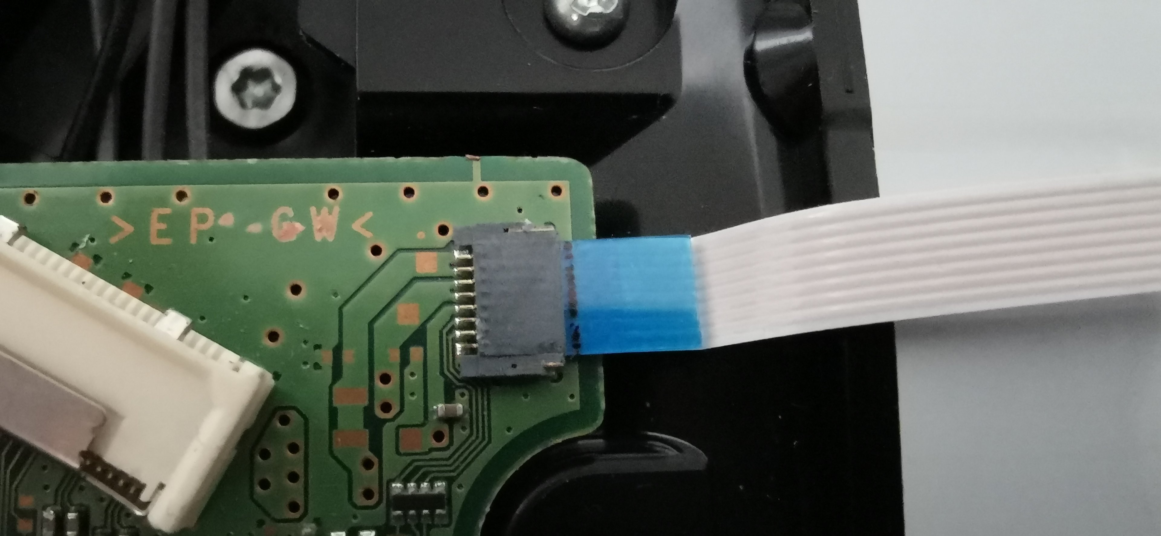 ich habe folgendes Problem: Ich habe meine PS4 (Revision CUH-1116A) auseinander gebaut, weil ich die WLP tauschen wollte (bei dem Alter der Konsole nicht abwegig). Bei der Demontage riss ich auf dem PCB des BluRay-Laufwerks eine Klappe einer Kabelfassung ab (siehe Bild), weshalb ich auf Ebay ein anderes, angeblich zur Revision kompatibles PCB, bestellte. Als es ankam, tauschte ich die PCBs und baute die Konsole wieder zusammen.