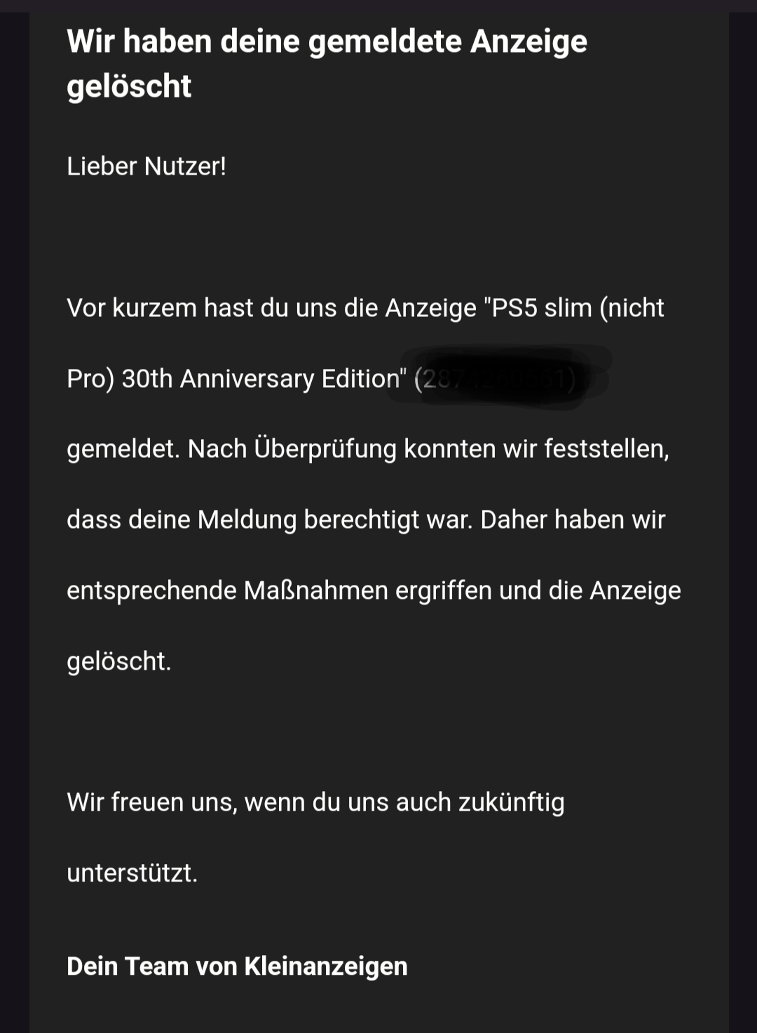 Na klar, da werden die Kleinanzeigen Anbieter aber zittern. Viel schlimmer als die Leute die einem eh auf die Mappe hauen wollen, weil man ihnen die Konsole nicht für weniger verkaufen will, als man selbst bezahlt hat. Solche Leute liebe ich ja. Kleinanzeigen wird da nichts machen (weil die wollen ja den Traffic) und das Finanzamt schon mal gar nicht. Am Ende ist das nur ein digitale Online-Anzeige, du kannst ohne zu kaufen ja nicht mal sicher sein, dass das Produkt überhaupt existiert. Am Ende kann Keiner nachvollziehen, wer es für wieviel gekauft hat.