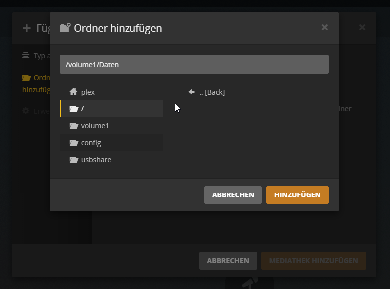 Ich wollte eine Musik Bibliothek erstellen. Wenn ich den Ordner auswählen möchte, in meinem Fall ist unter volume1/Daten/MP3/Musik die Musik, wird nach dem Ordner Daten kein Unterordner angezeigt.
