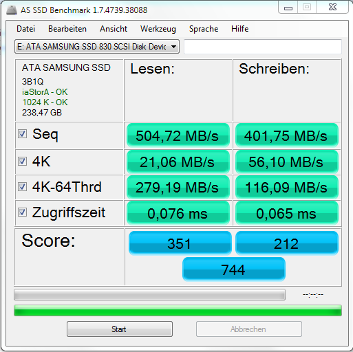 Dann kam Amazon mit den WHD und den 10%, also eine Samsung 830 für 148€ als "gebraucht - sehr gut" bestellt. U.a. wegen dem "geringen" Aufpreis und vor dem Hintergrund, ein paar mehr GB im Petto zu haben.