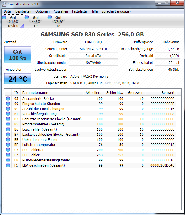 Heute ist sie gekommen und ich ich wunderte mich sehr stark, über die ausgelesenen Werte, vor allem die Menge der geschriebenen Daten. Über die andere Samsung mit Zustand "wie neu" will ich lieber keine Worte verlieren, die stellt die Werte locker in den Schatten...