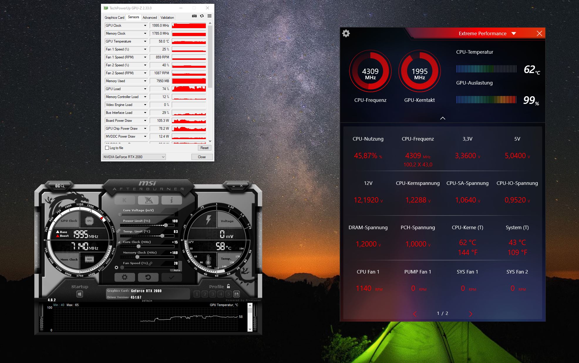 Jedoch habe ich urplötzlich Frameeinbrüche (30-50 FPS), sodass das Spielen gar keinen Spaß mehr macht. Ich habe mal im MSI Dragon Center nachgeschaut, was für eine Auslastung ich habe und habe gesehen, dass meine GPU-Auslastung dauerhaft in einer Runde bei 98-100% liegt.