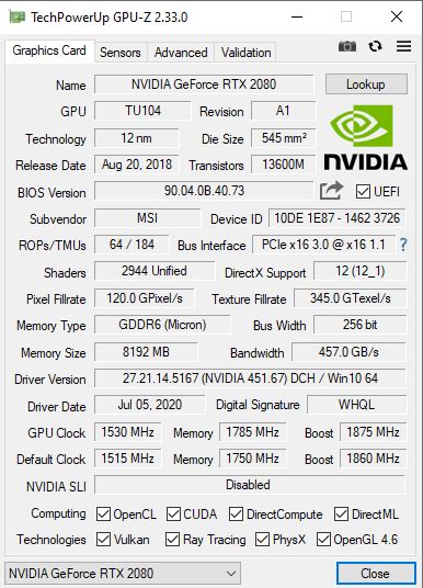 NVIDIA GeForce RTX 2080 Gaming x Trio