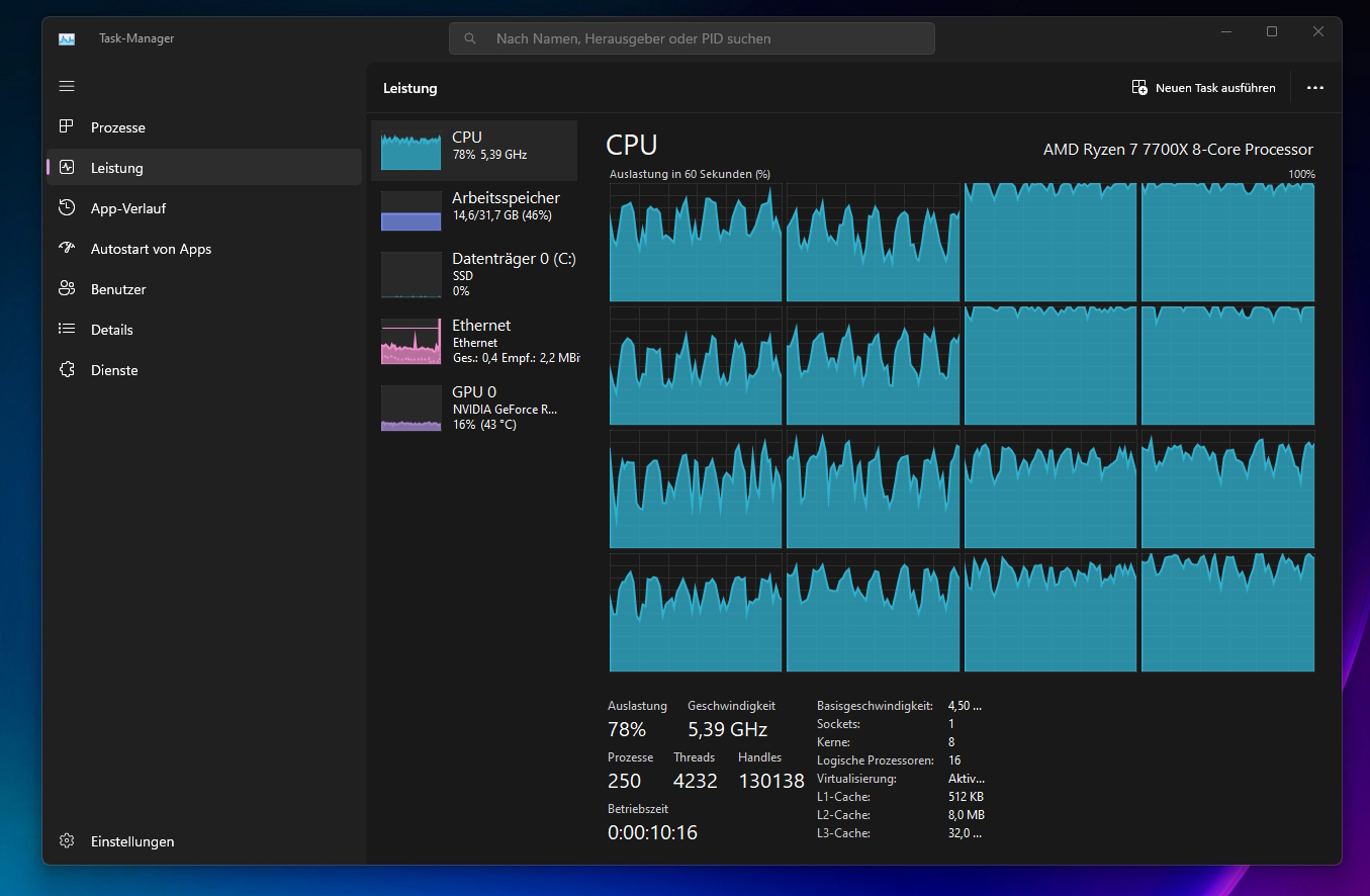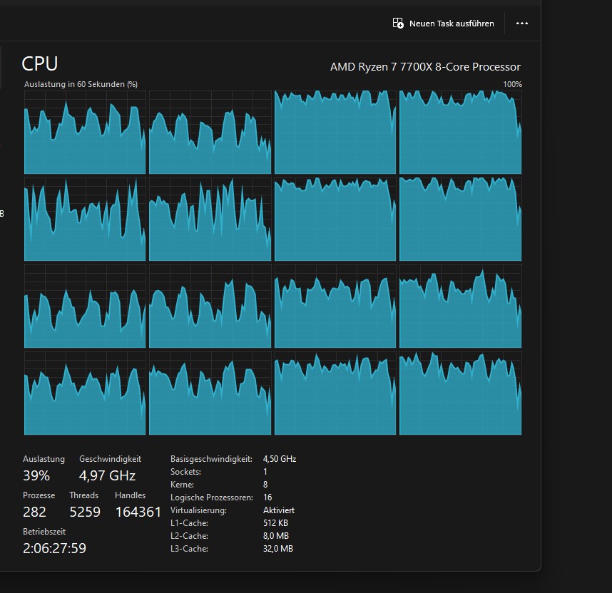 Gestern Abend wollte ich er dann genau wissen und habe einen Screenshot vom Taskmanager gemacht: