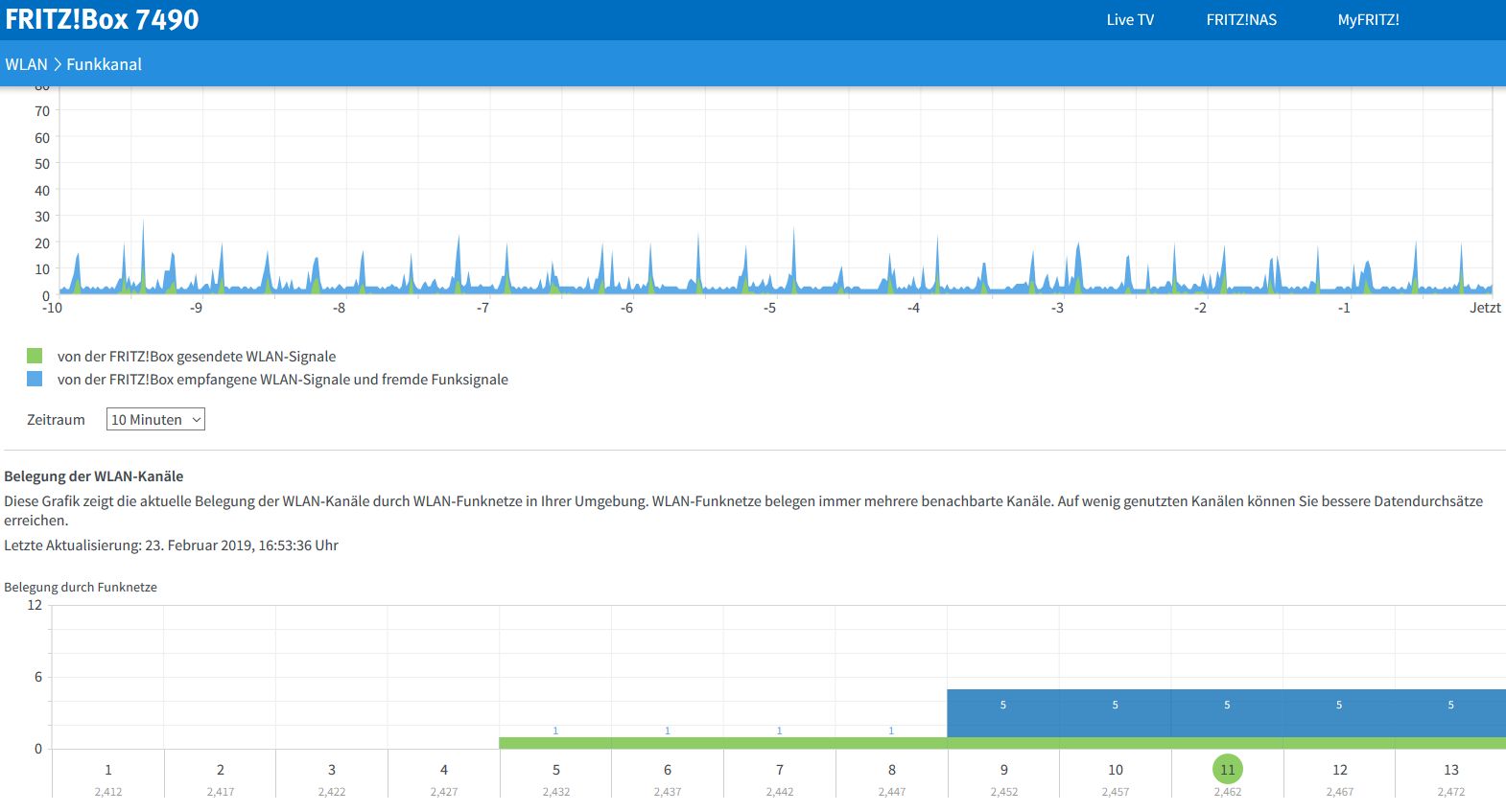 Also habe ich mich in der Fritzbox angemeldet. Dort steht unter "System" "Ereignisse" "WLAN" als letzter Eintrag "WLAN-Übertragungsqualität durch reduzierte Kanalbandbreite erhöht (2,4 GHz)." Das sollte damit nichts zu tun haben, denke ich.