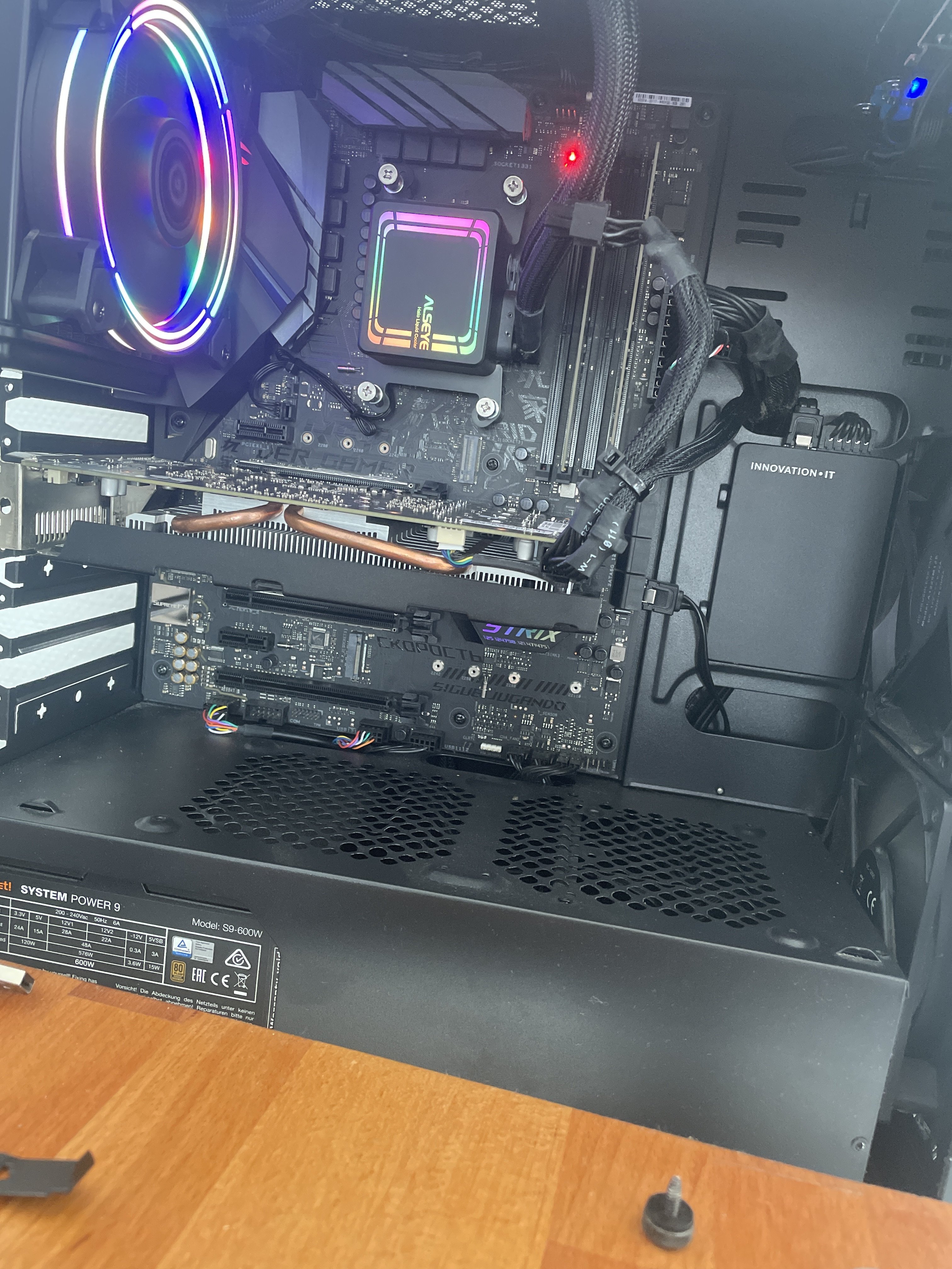 Der pc geht an also alle Lüfter, die Kühlung, die RGBs die GraKa Kühlung springt auch an. Alles geht an nur es kommen keine Signale mehr raus. Weder aus USB Ports noch aus HDMI noch aus Display Port nirgends