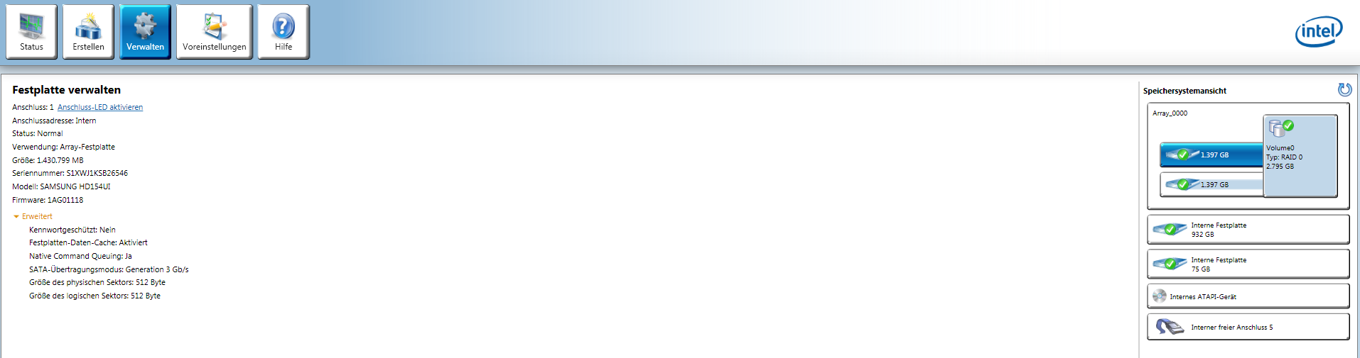 ]Habe mal den Intel Rapid Storage Manager gestartet und auch einen Error bekommen (s. Bild2)