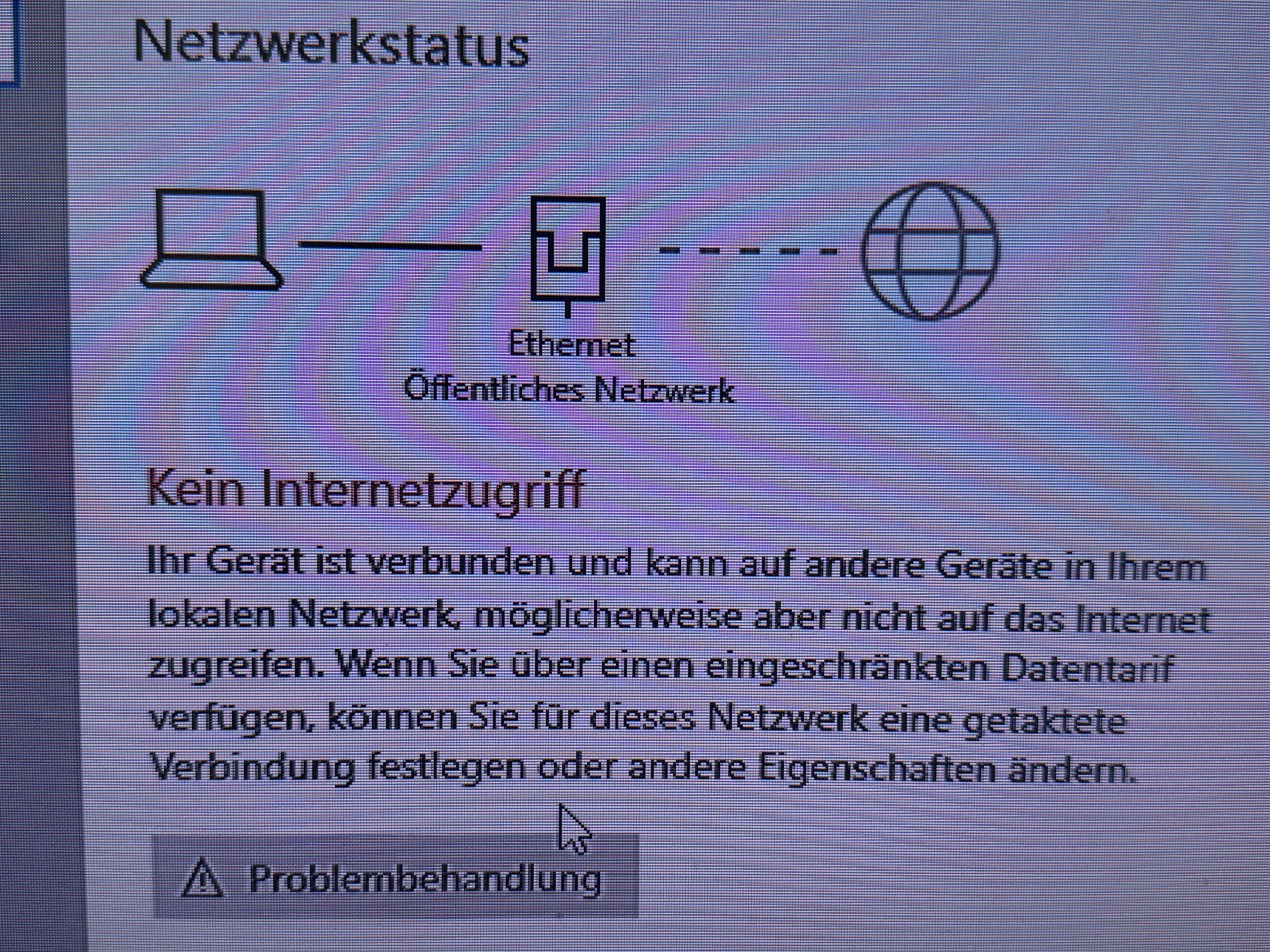 Seid gestern habe ich bei meinem PC, der per Ethernet ans Router angeschlossen ist kein Internetzugriff mehr.