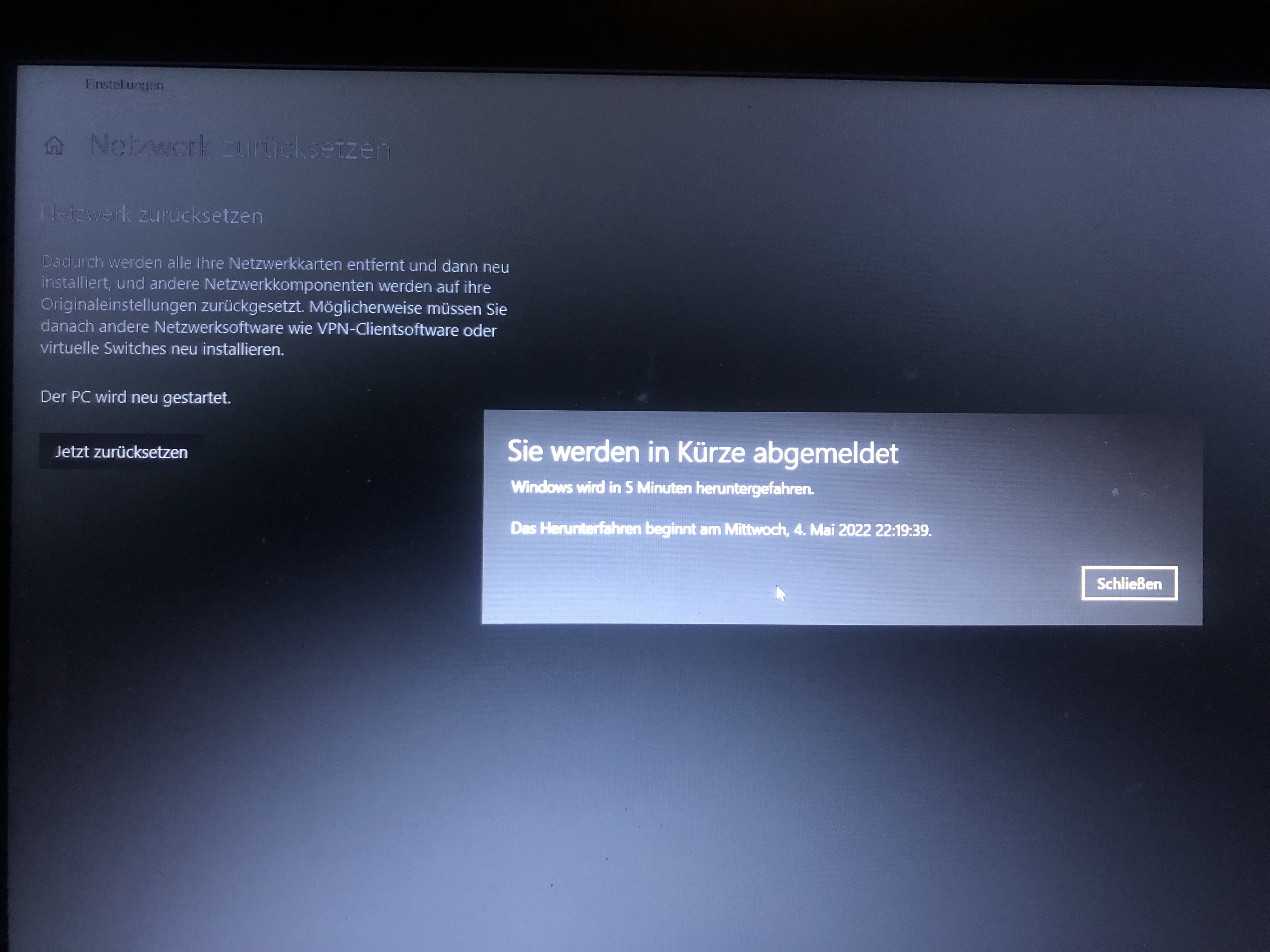 Modem aus und wieder angeschaltet, keine Besserung.
