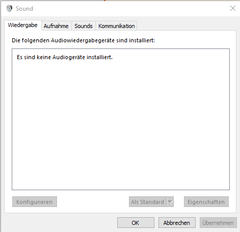 Bei Wiedergabegeräte ist auch alles leer obwohl sonst Realtek high definition audio da war, was aber einfach verschwunden ist?