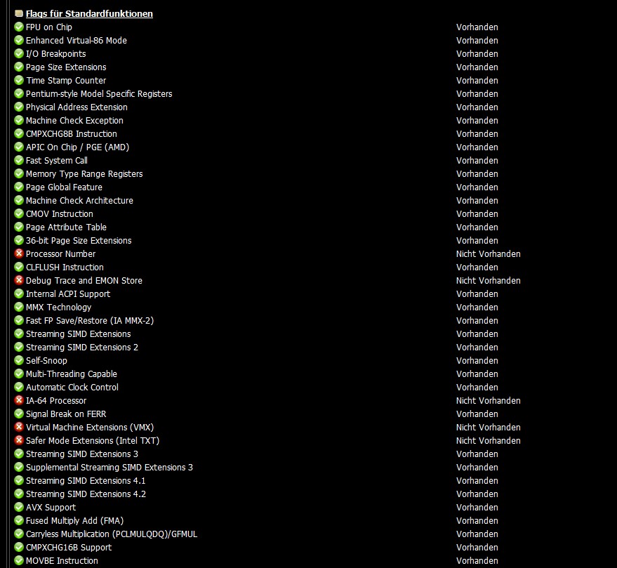 Flags für Standardfunktionen: s. Bilder im Anhang + Sensorenbild vom CPU-Stresstest mit "Prime95"-Tool