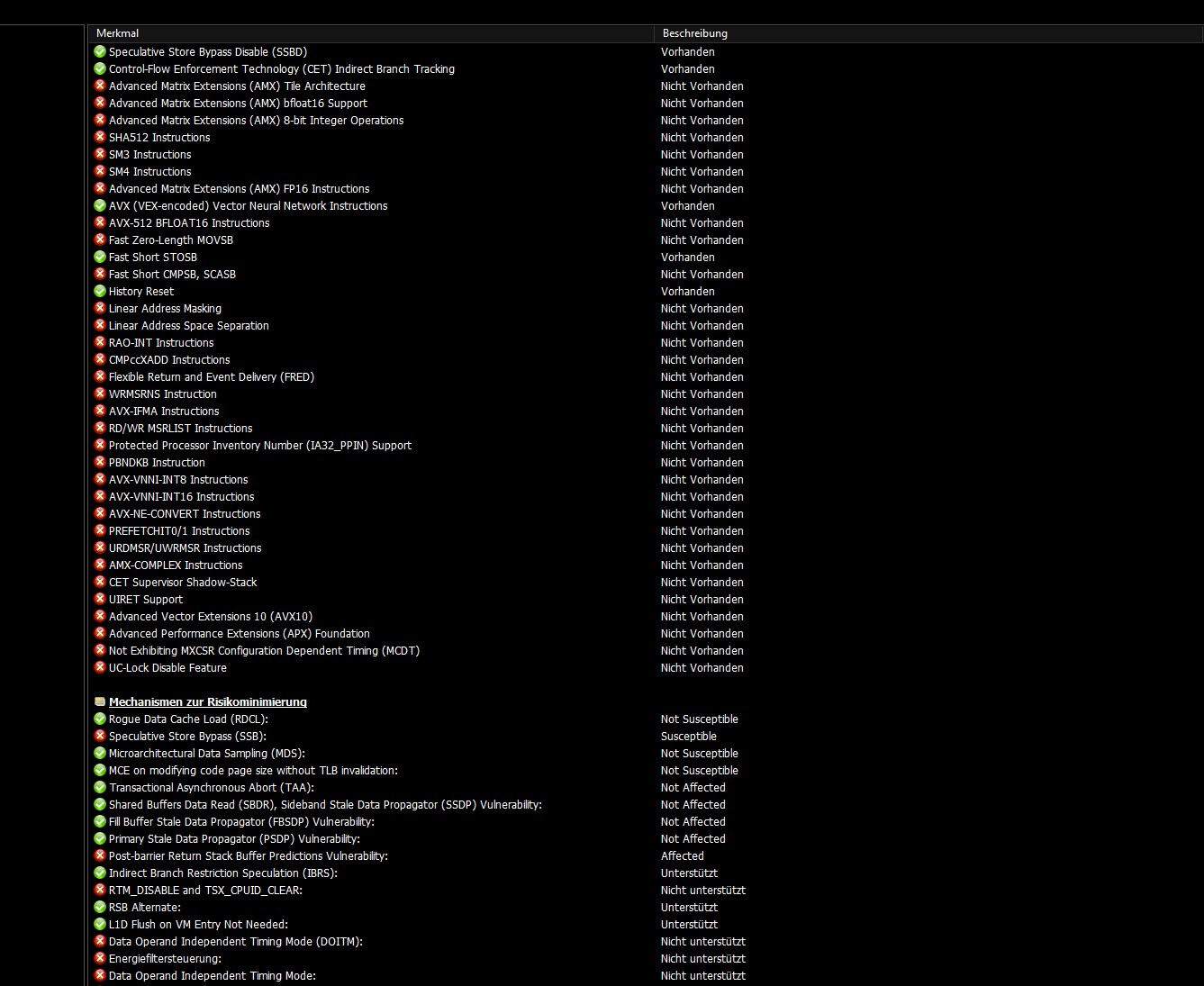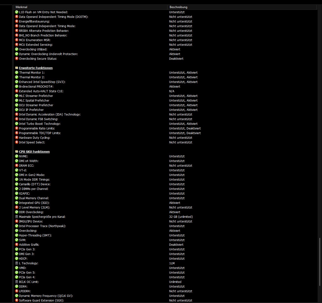 - HWinfo 64 gibt mir folgende rote Punkte/Flags: