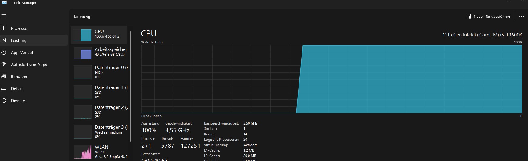 - Prozessor (CPU): 13th Gen Intel(R) Core(TM) i5-13600K 3.50 GHz
