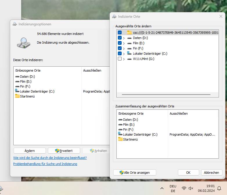 Du meinst hier einfach alle 4 SSDs anhaken? sollte ich die anderen Einträge, die "nicht verfügbar" sind, deaktivieren? und Outlook? Was bedeutet das Indizieren eigentlich?