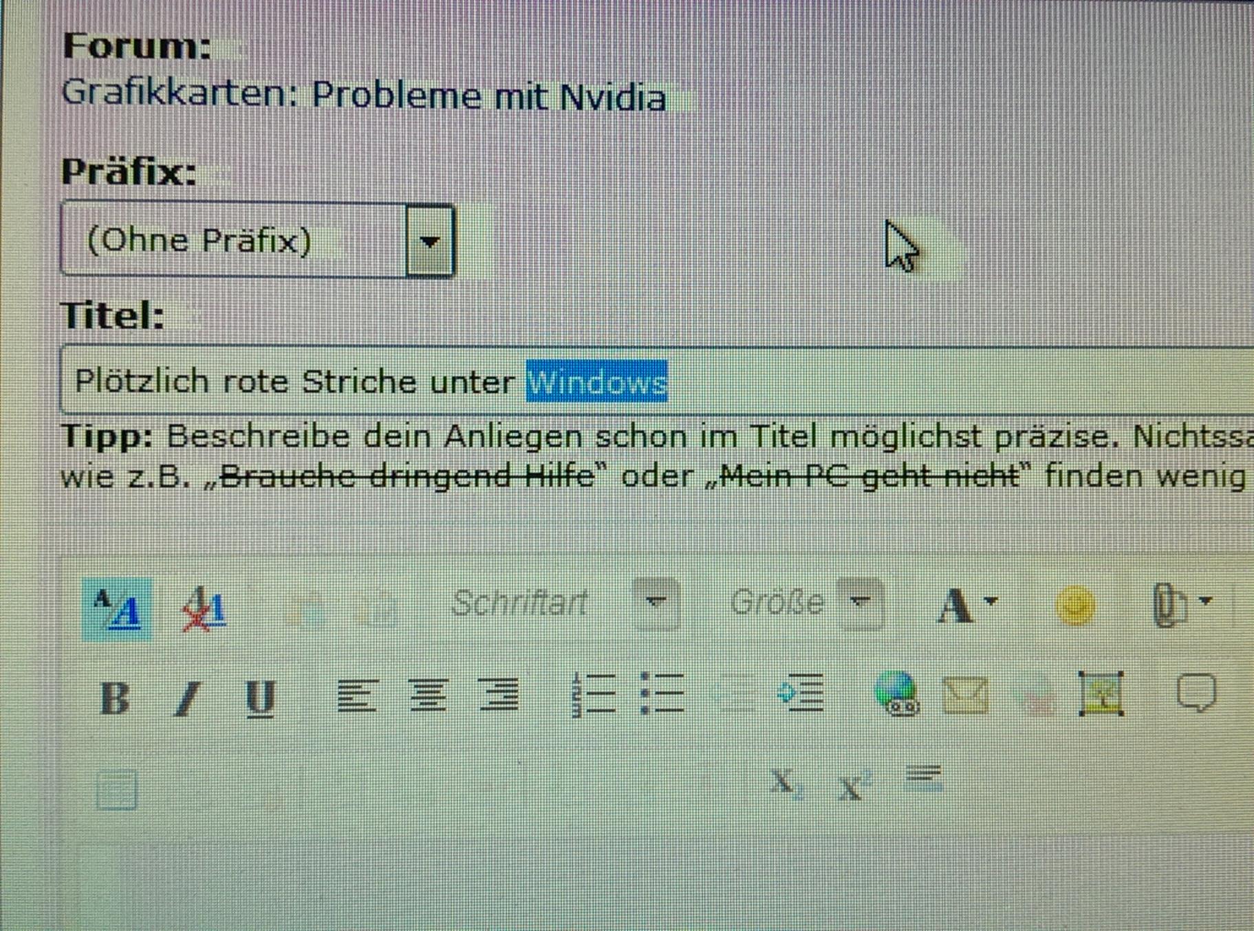 Bis jetzt habe ich sie nur auf weißen Bildflächen gesehen.- Hinter dem Mauszeiger ist ein "Schatten", wo keine roten Striche sind.