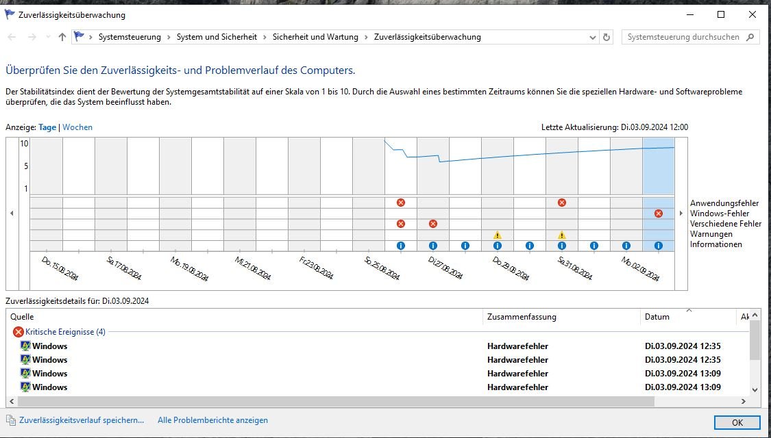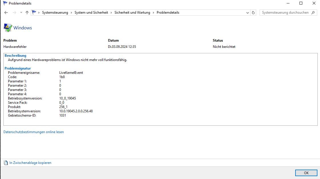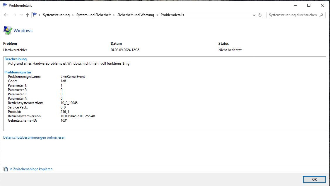 - RAM mit Windows Speicherdiagnose getestet, nichts Negatives