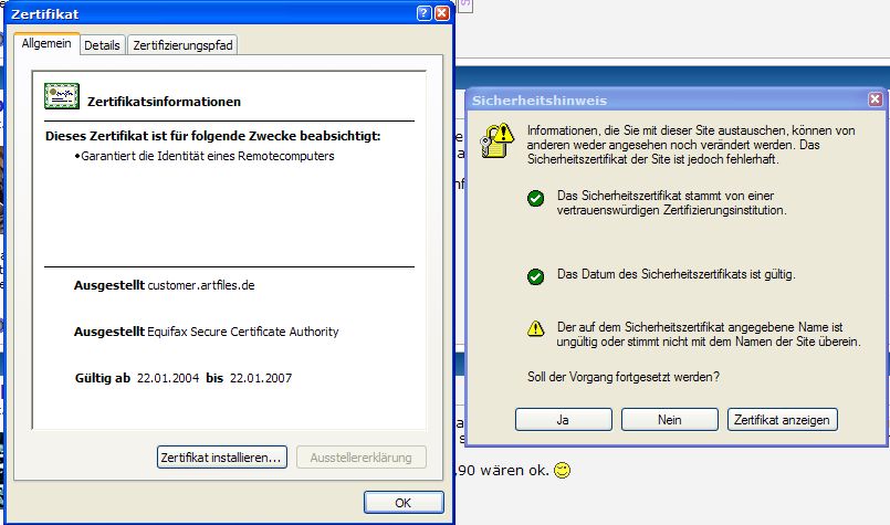 Plötzlich Zertifikat-Popup auf CB von artfiles.de