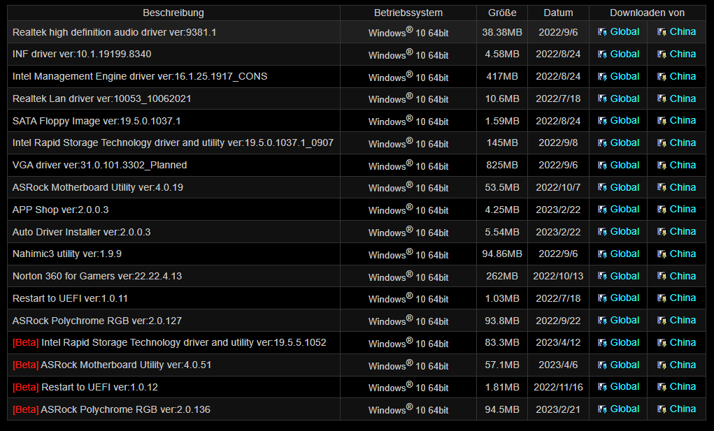 Ich habe jetzt verschiedene Treiber erneut heruntergeladen und ausgeführt (INF, AutoDriverInstaller, Realtek_LAN, Realtek Audio, MotherboardUtility)