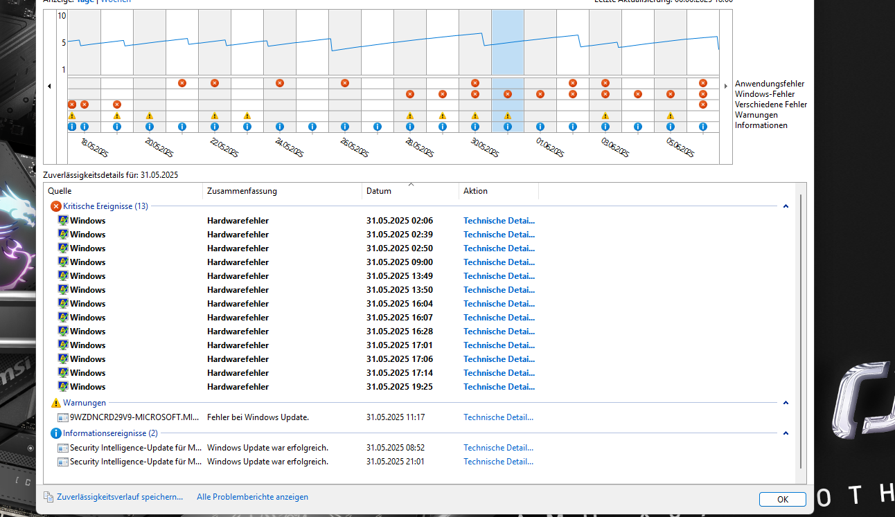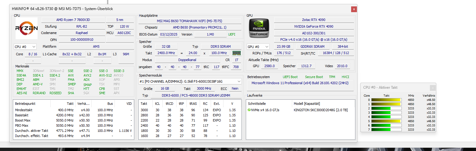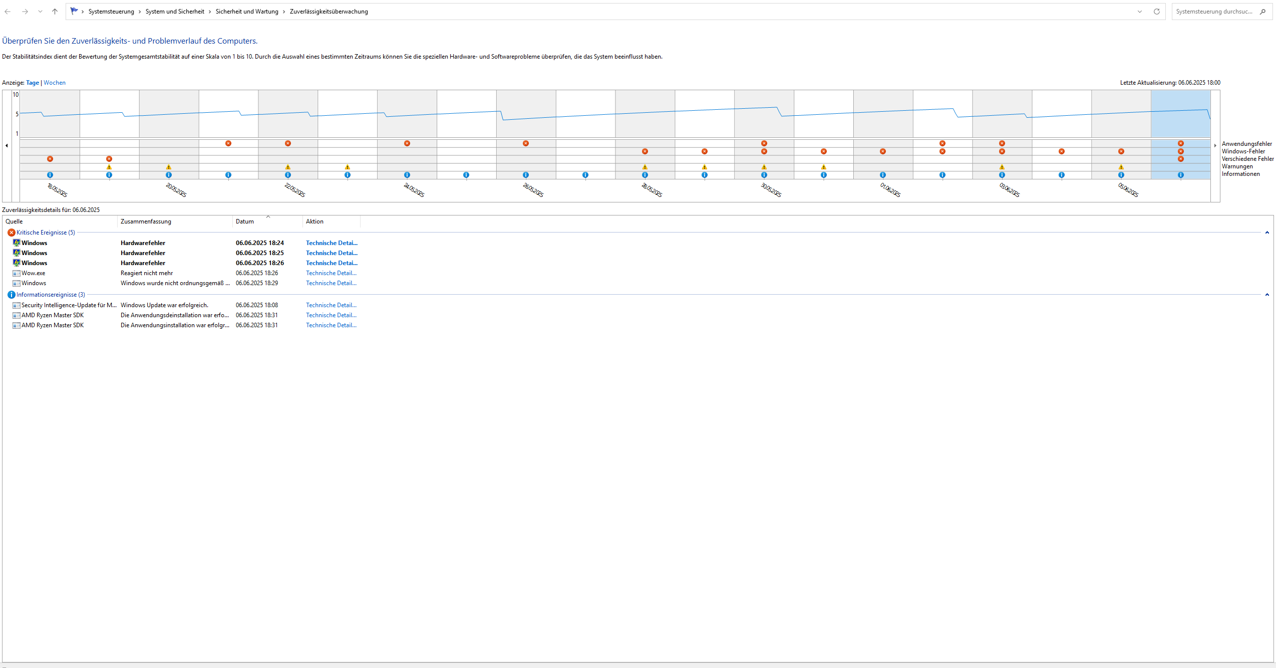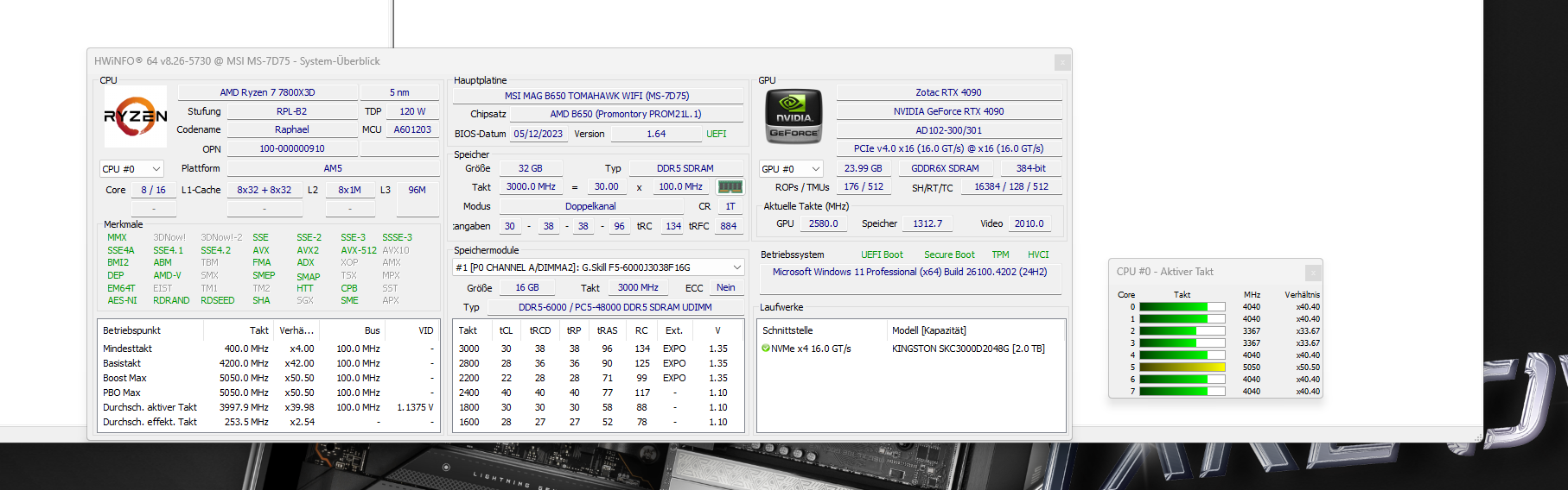 Windows ist recht neu Installiert, habe auch schon ein Programm über die Grafikkarte und RAM laufen lassen.