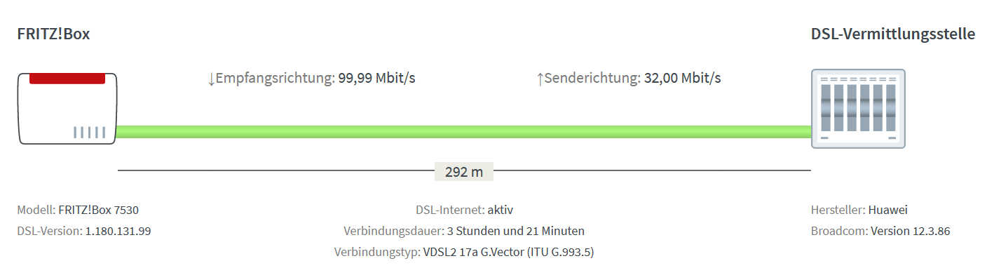 2. DSL Syncrate begrenzen auf verfügbare Bitrate, keine Auswirkung.