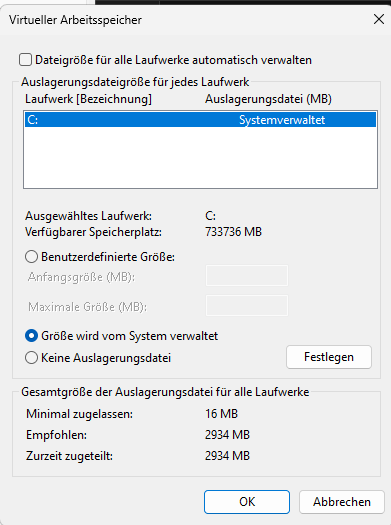Im BIOS steht dass mein RAM Takt 3500MHz obwohl mein RAM Takt 3600MHz ist. Ich weiß nicht ob dass so ein großen Unterschied macht.nutrix schrieb:Hat da jemand etwa wieder den virtuellen Speicher bzw. Auslagerungsdatei abgeschaltet?