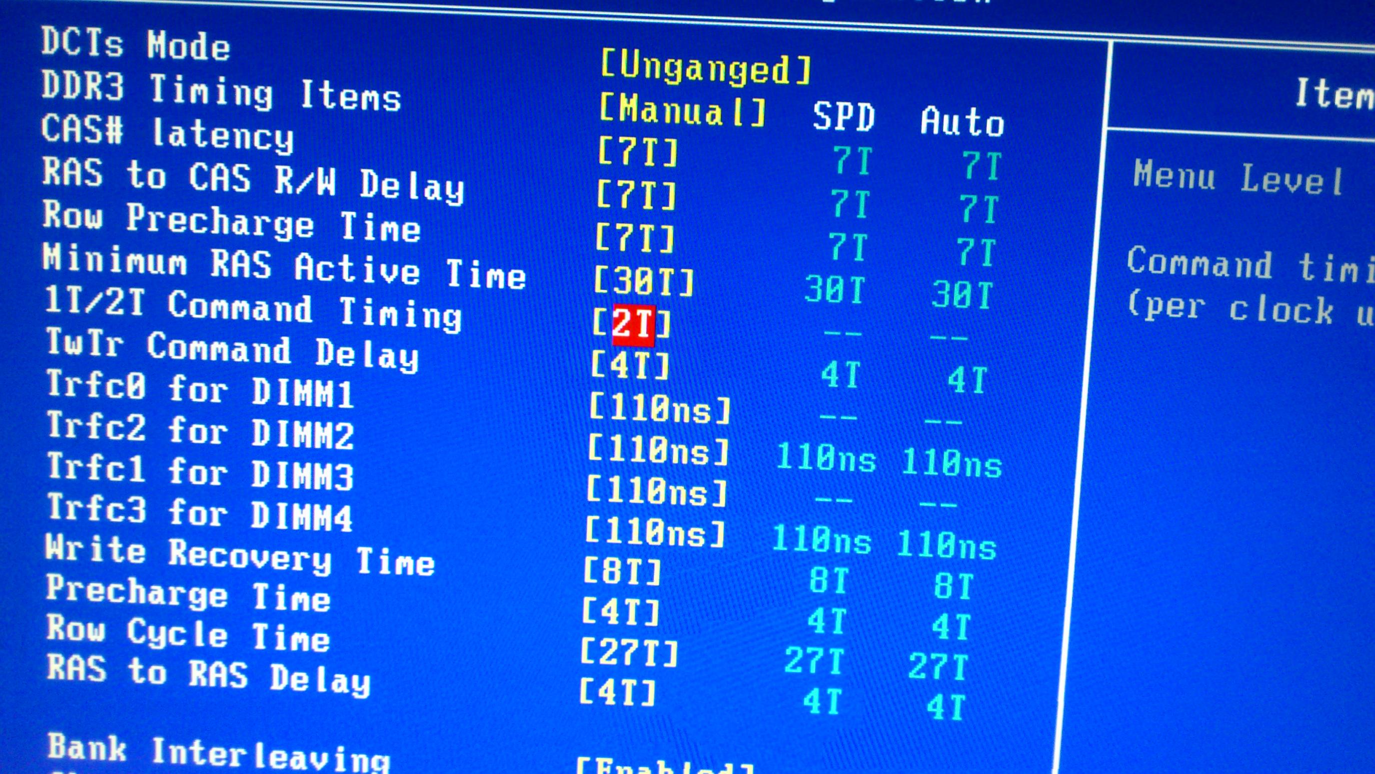 "MB Intelligent Tweaker(M.I.T.)" -> "DRAM Configuration" -> "DDR3 Timing Items" auf [Manual] -> "1T/2T Command Timing" auf [2T]