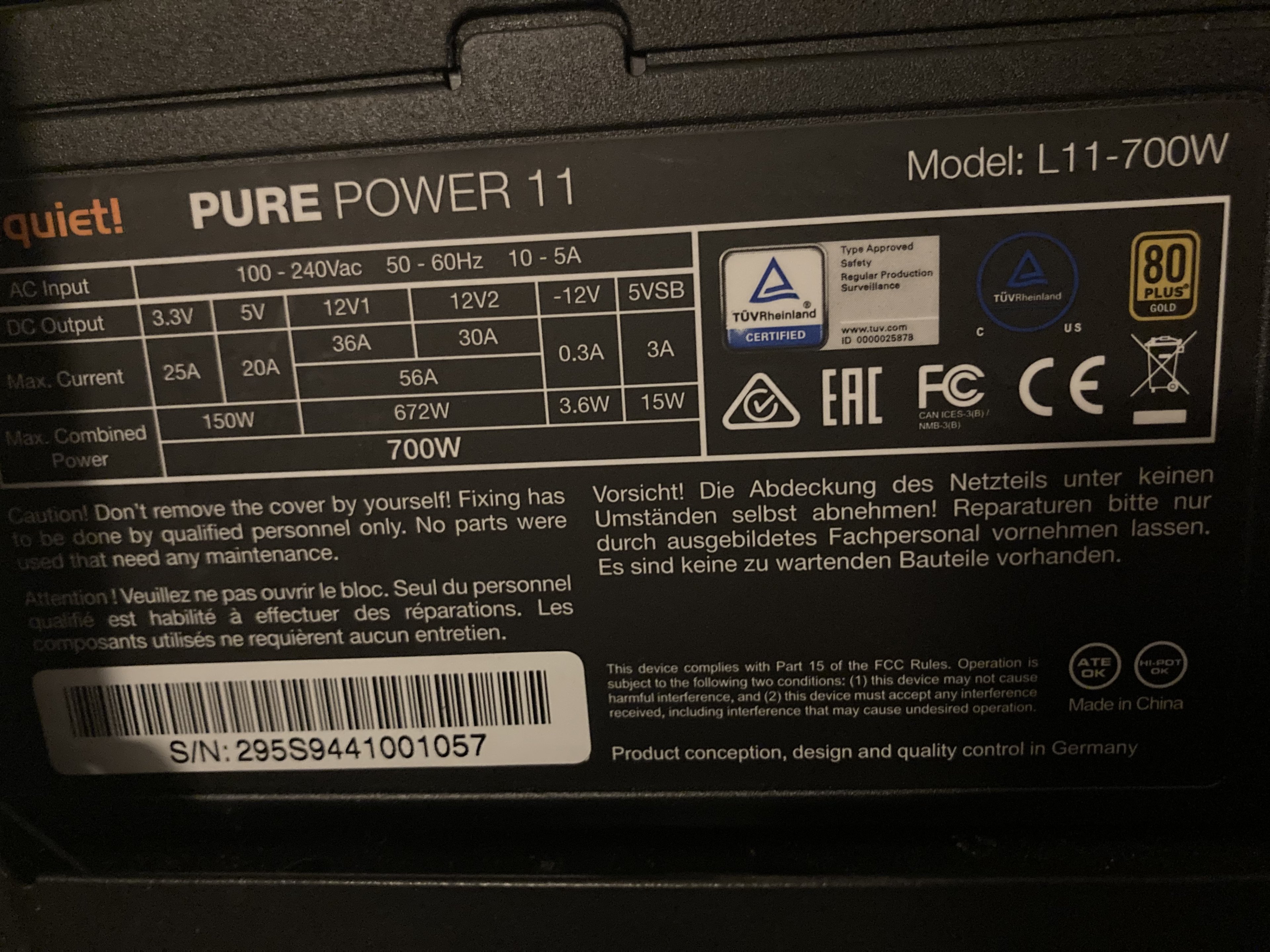 Netzteil: 750 Watt bequiet PSU