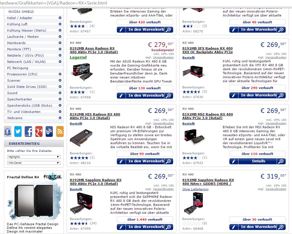 Ne sieht nicht so aus, da es von der rx zu wenig gibt um 3 chiptypen diesee mengenmäßig übertrumpfen. Amd kann nunmal keine 20.000 Karten pro Woche herstellen selbst wenn sie sie verkaufen würden.