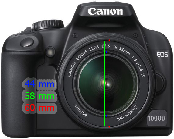 Da fängt es schon bei der Gewinde-Größe des Filters an. Auf dem Standard-Objektiv der EOS 1000D steht ein Durchmesser von 58 mm, aber ist das auch die Größe, nach der ich für Polfilter Ausschau halten muss? (siehe Anhang). Oder muss ich nach irgendwelchen anderen Maßen hantieren?