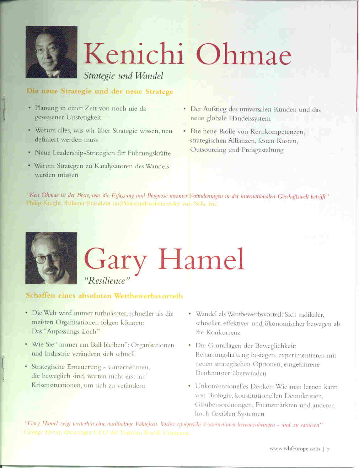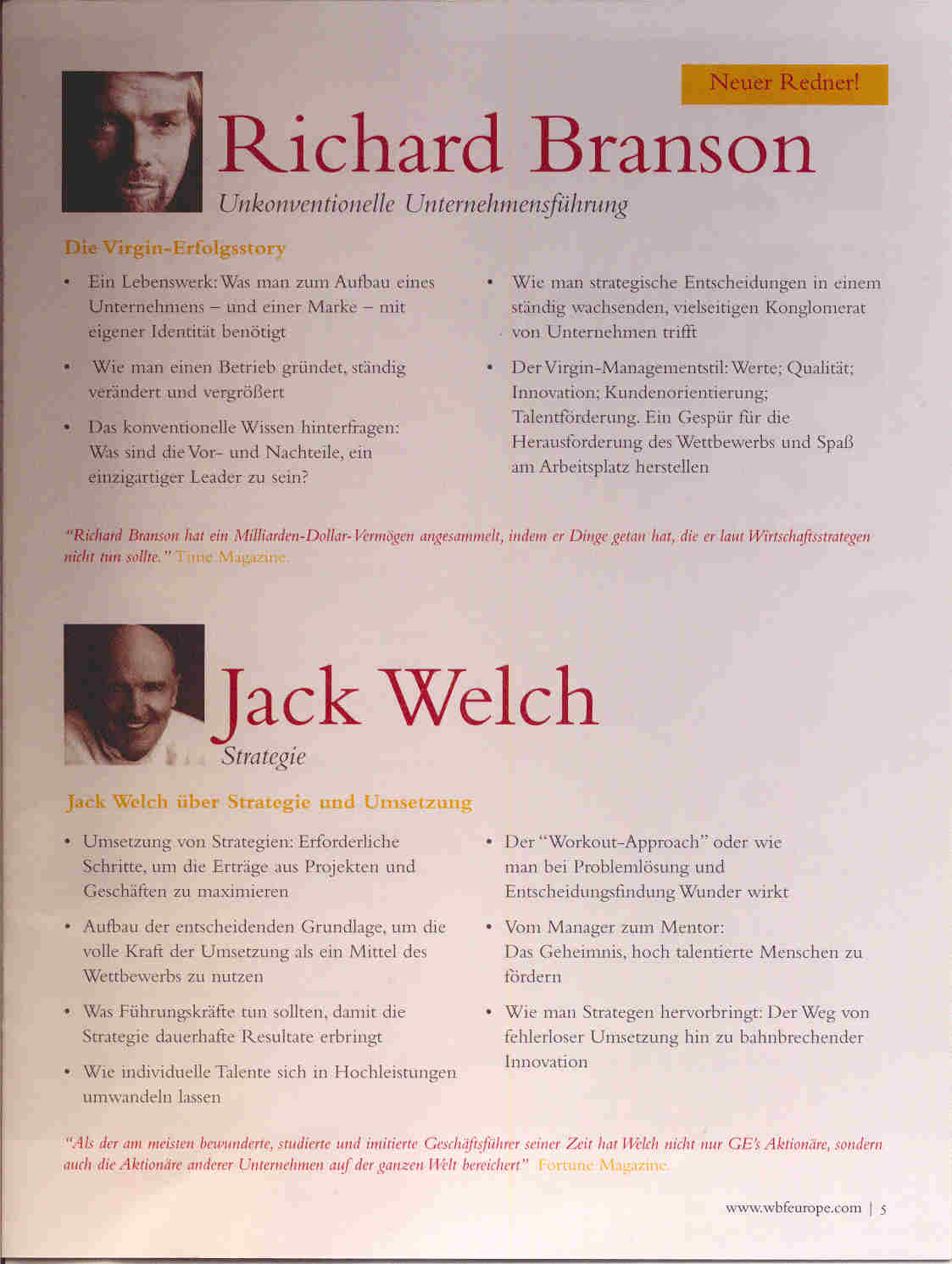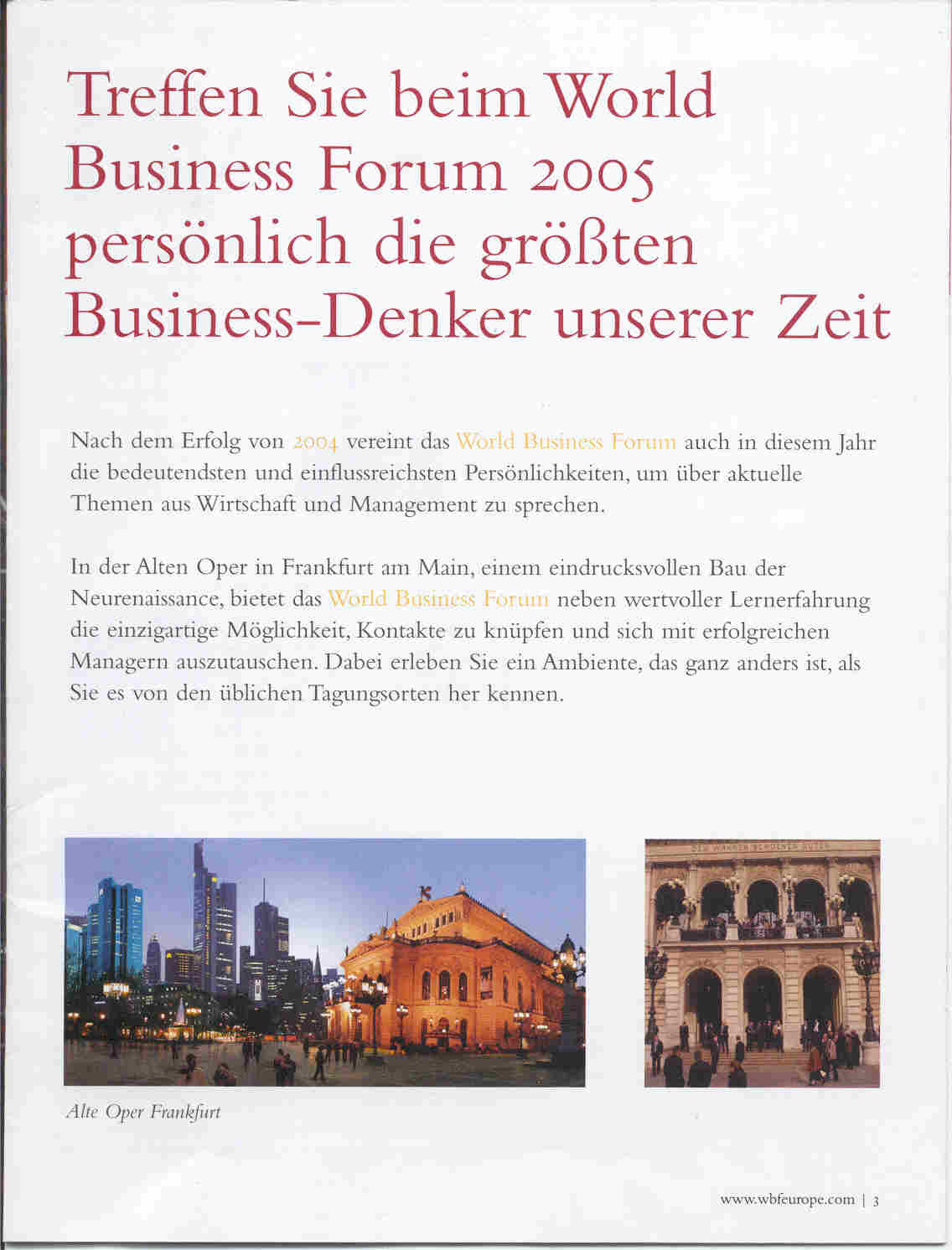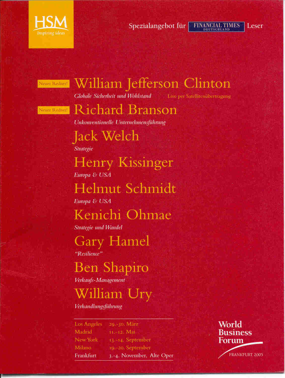 "Treffen Sie beim World Business Forum 2005 persönlich die größten Business-Denker unserer Zeit"