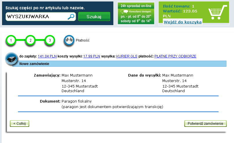 Mit Hilfe der Webseiten-Übersetzung von Google bin ich schonmal bis zur Bestellung gekommen, aber irgendwie akzeptierte Der Shop die deutsche Postleitzahl nicht.