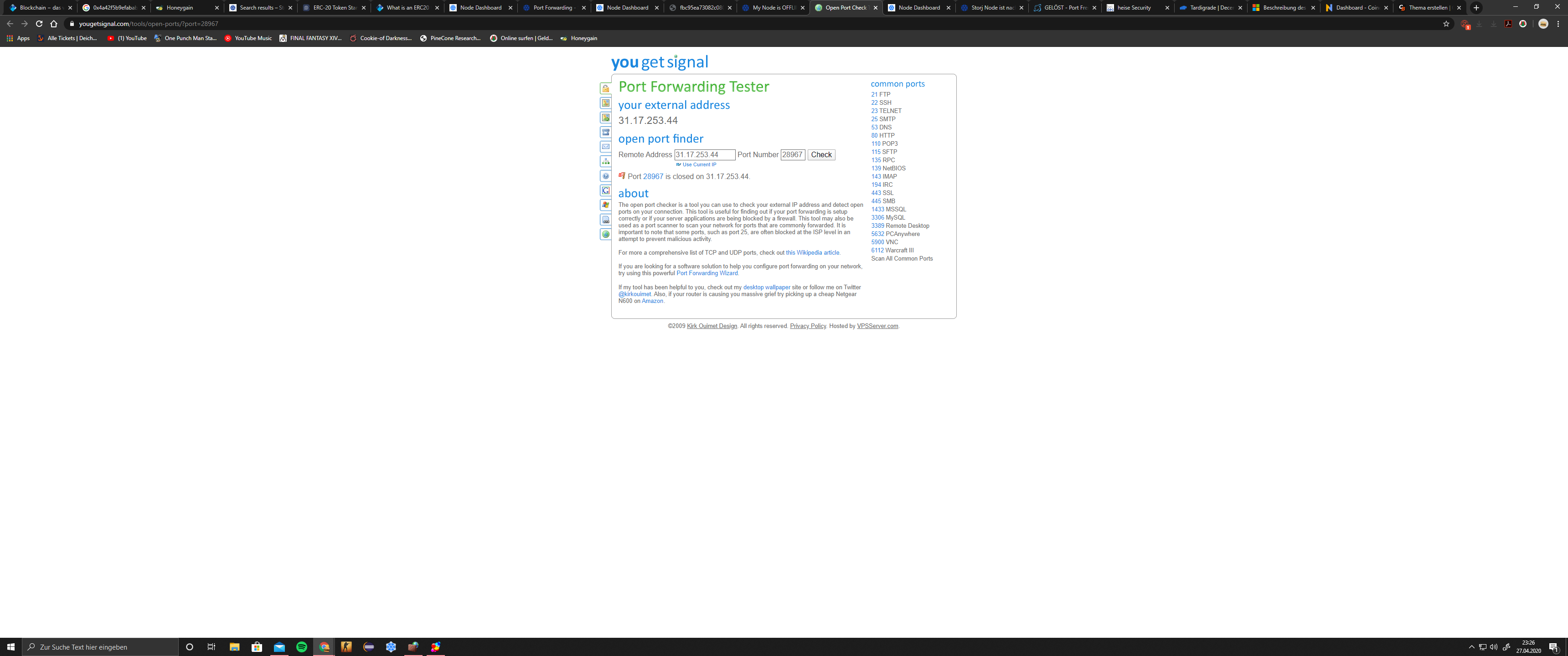 4. Nach Möglichkeit nicht aus dem eigenen Netzwerk heraus testen, sondern lieber vom Nachbarn, Kumpel oder im worst case via Handy-Hotspot. Sonst kommt einem ggfs der eigene Router in die Quere, der sich nicht gerne selbst von außen anspricht (NAT-Loopback)