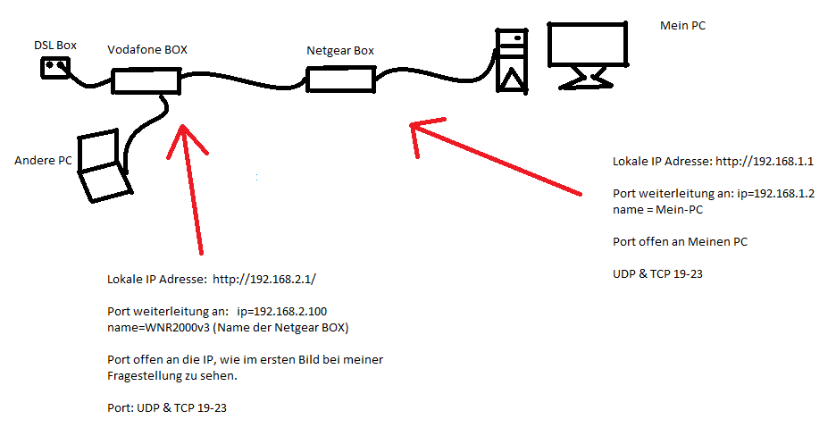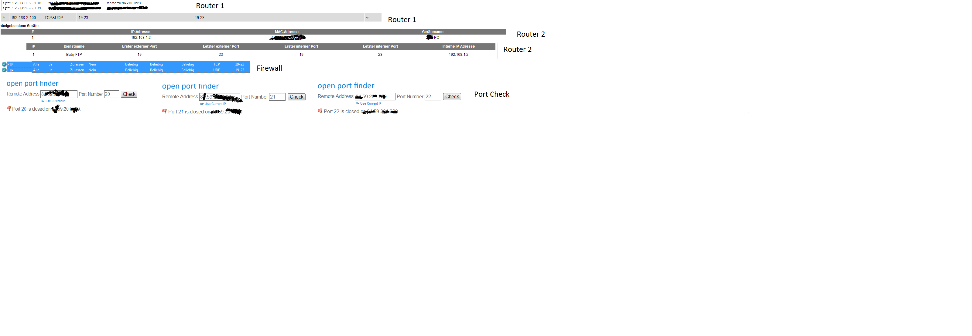 Ich habe ein DSL Router von Vodafone und noch ein Router von Netgear der dann dann an meinen Computer angeschlossen ist. Ich wollte ein FTP Server machen, aber ich bekomme es leider nicht hin ...