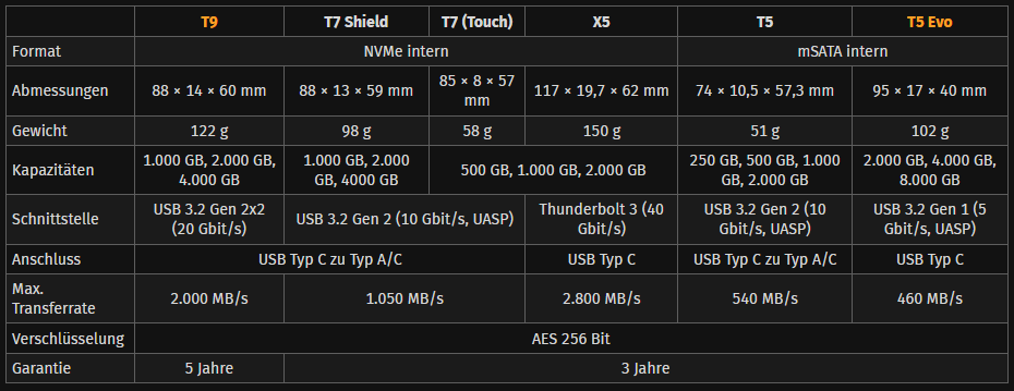 Mal gut das einen diese "2000MByte/s" (= "bis zu" 16 GBit/s) vermutlich eh enttäuschen werden - dann fällt der Fallback auf USB3-10G nicht wirklich auf.
